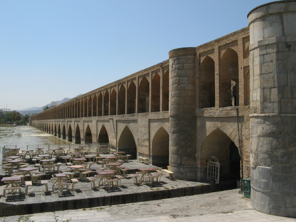 继续向北,抵达“世界的一半”。令人惊奇的是,在伊斯法罕号称全球第二的中心广场上,虽然夜深,却是人头攒动。人们纷纷席地而坐,或友朋聚会,或家庭野餐。毫无紧张气氛,更没军警。广场四周的建筑中,还有不少商场饭店之类。与宗庙比邻而居,相安无事。“主台”内还允许参观,拍照留念。更为印象深刻者,当属城郊的几座古桥,精美无比,以及一座略带娱乐性质的 “摇摇塔” 清真寺。这一切,与公路上依稀可见的防空弹形成了鲜明的对比。