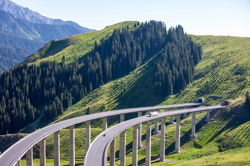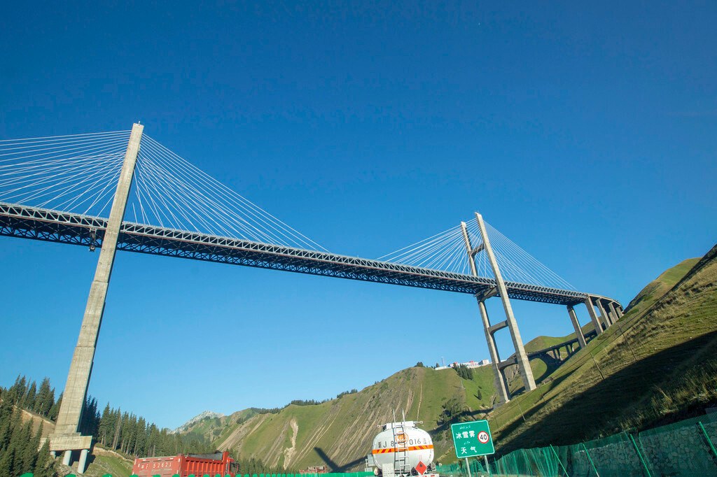 果子沟大桥作为全国首座公路钢桁梁斜拉桥、也是新疆第一高桥