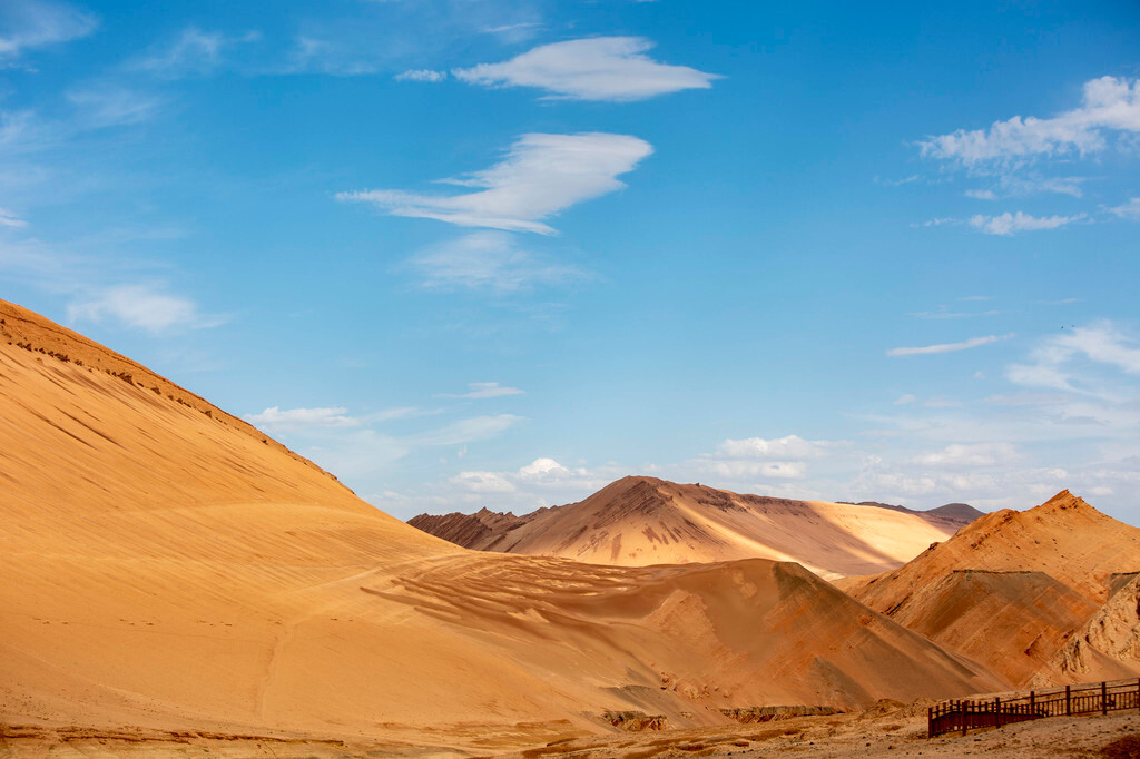 库木塔格沙漠,为中国第八大沙漠,据记载,此地“长八百里,目无飞鸟,下无走兽,复无水草”