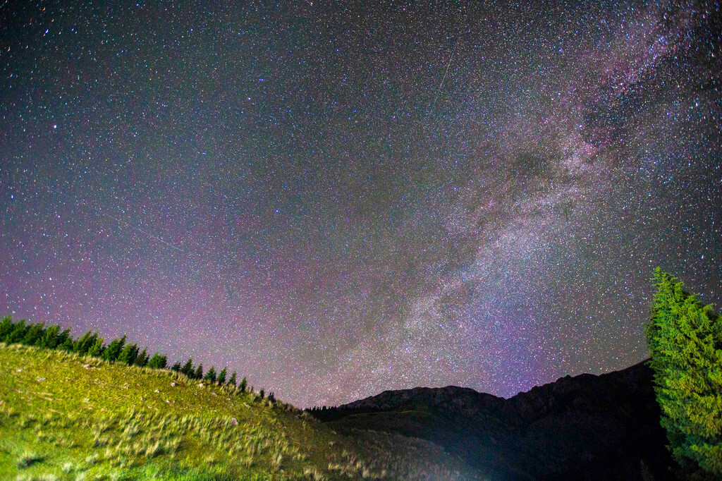 热情无处不在,在本地就职的小师弟送来几条赛里木湖特产高白鲑鱼,又少不得一顿狂饮...........,酒至酣处的我来到毡房外,听着涓涓溪水流淌、仰望星空。。。。。