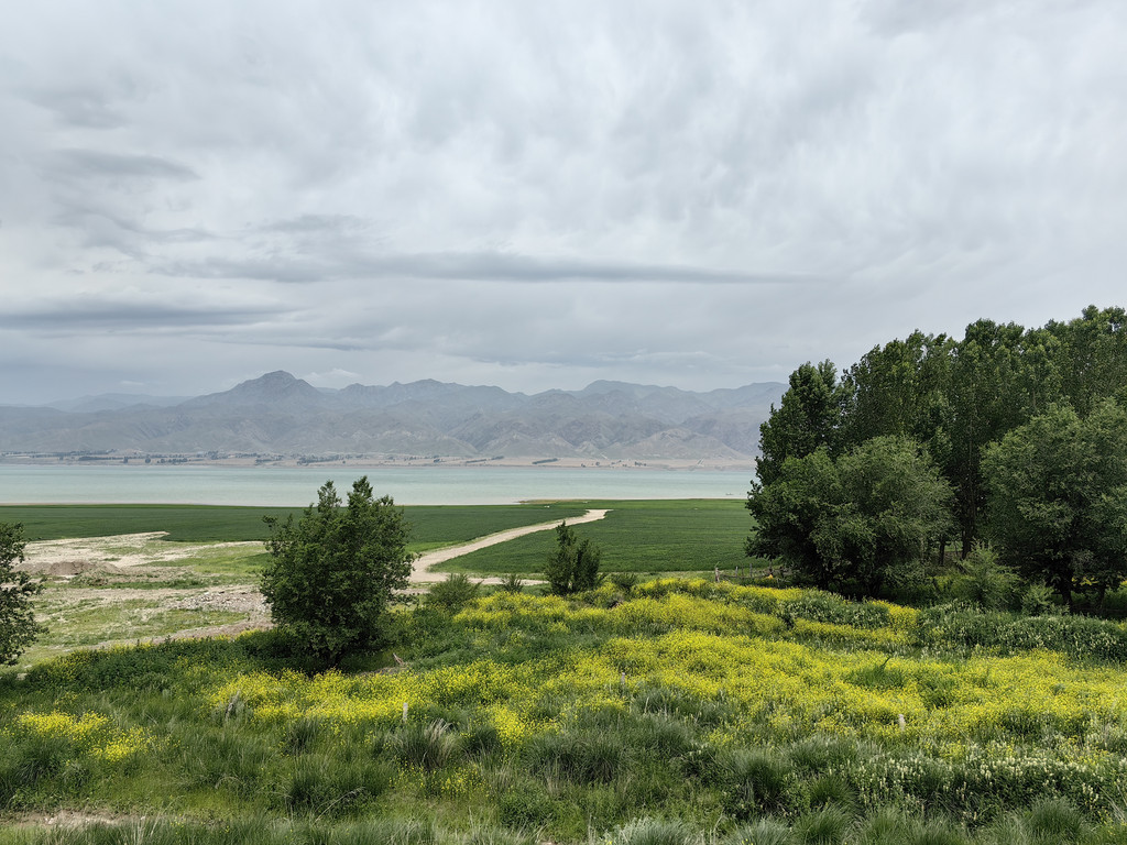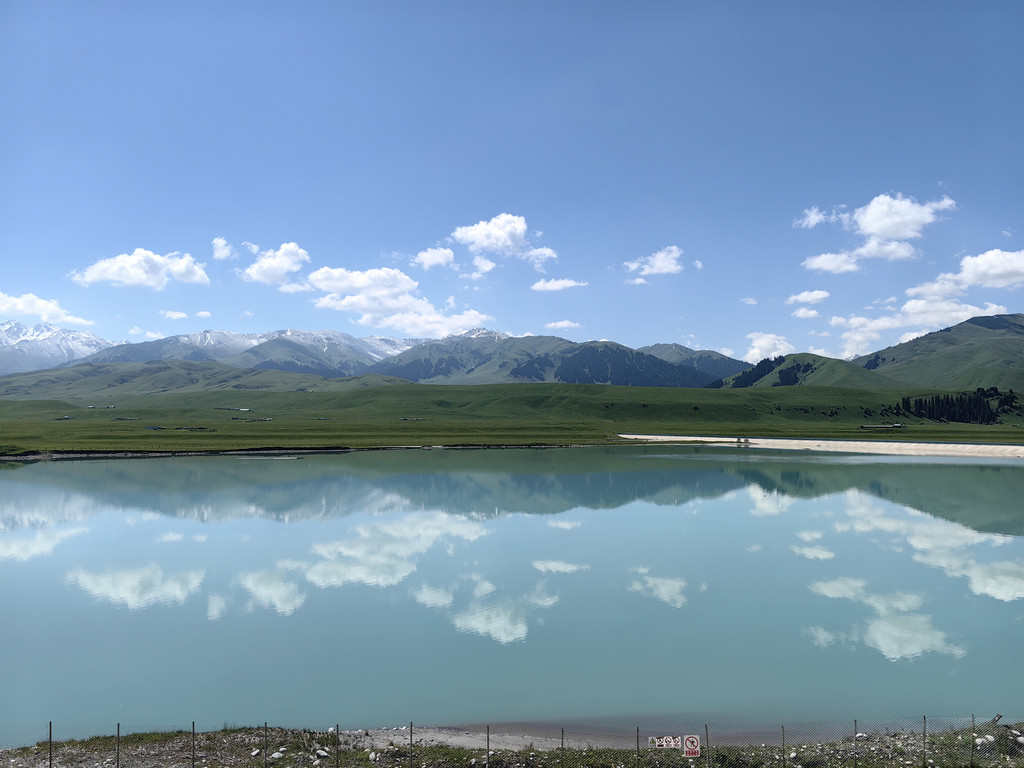 早上我们离开特克斯县城,沿着美丽的特克斯河前行。车在765县道上行驶了2个多小时后,在公路旁出现了一片淡绿色的水域,我们来到了恰甫其海。
