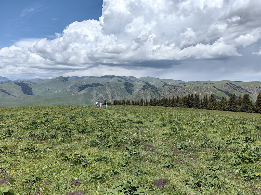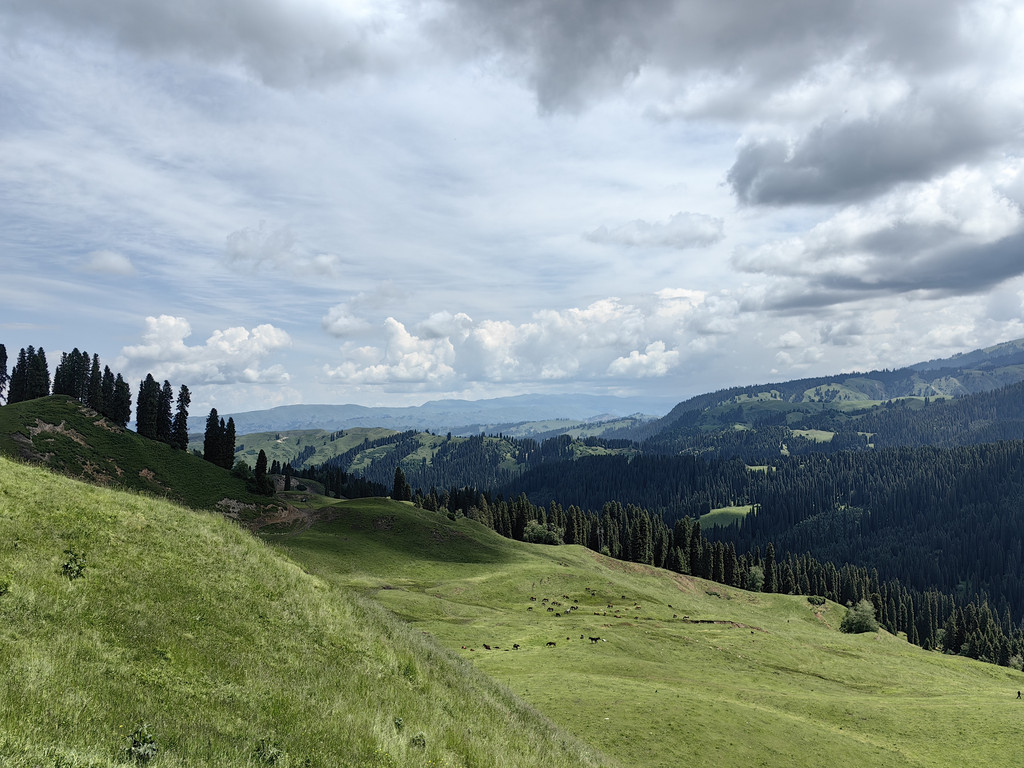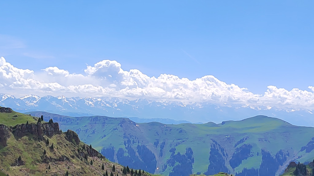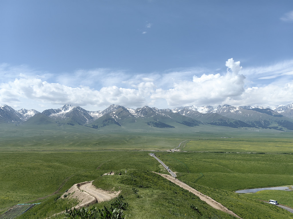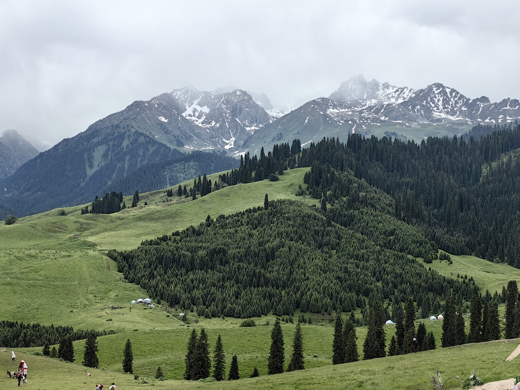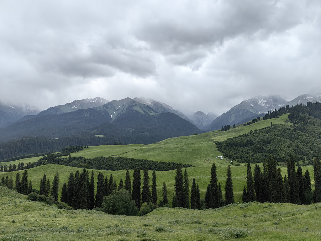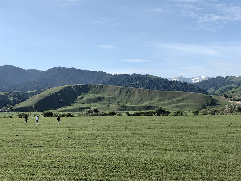 我们去乔尔玛烈士陵园进行瞻仰后,继续沿独库公路前往那拉提。路上满眼是青翠的云杉林和绿茸茸的草场,雪峰与白云为伴,风景美不胜收。