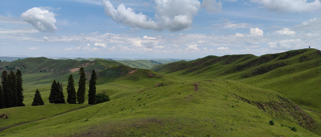 距离特克斯县城约25公里的阿克塔斯草原,被称为“小喀拉峻”,早上我们开车来到这片美丽的草原。