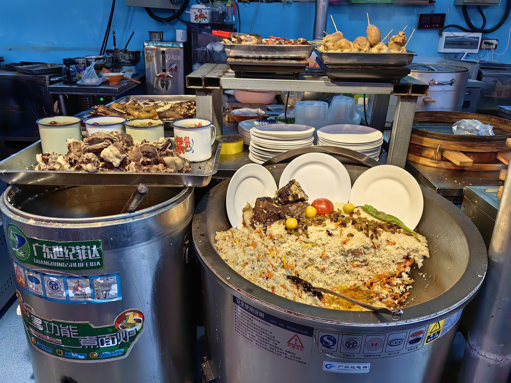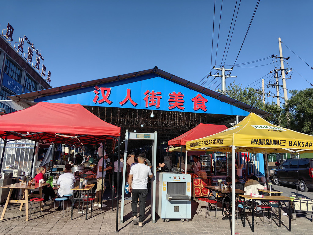 与喀赞其民俗旅游区隔路相望的是汉人街美食巴扎。