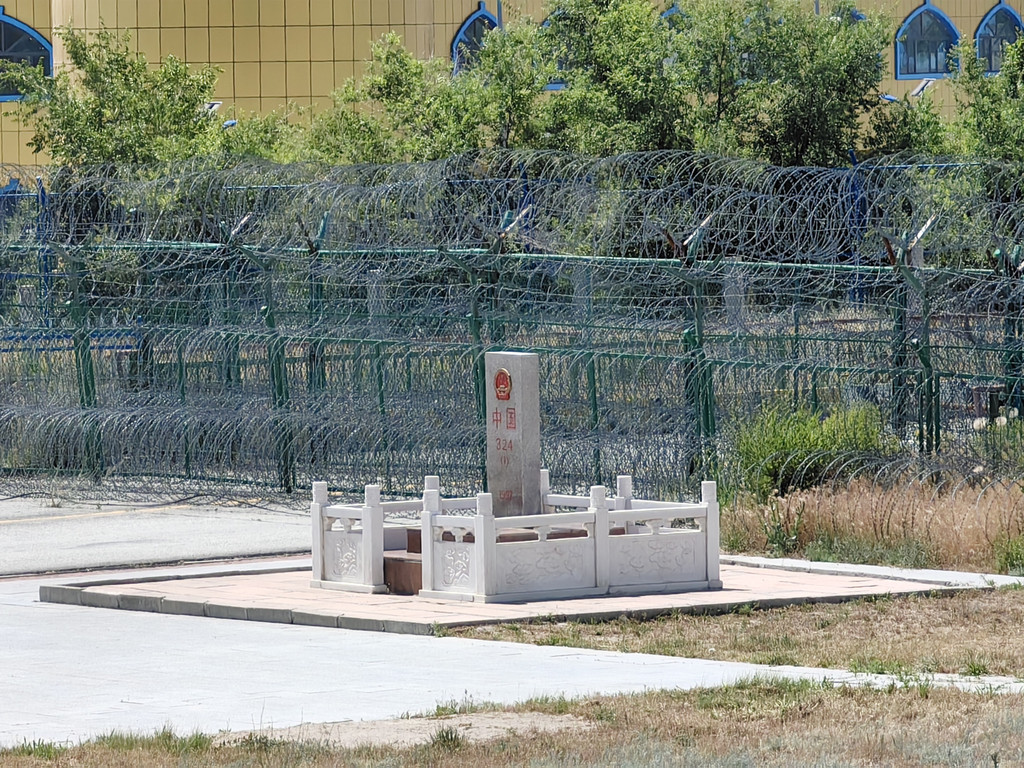 中哈两国以霍尔果斯河为界,两国以界桥相连,界河两边有中哈两国界碑,位于中方的是324(1)界碑,是1997年中哈勘界完成后所立的。这个碑是伊犁州沿边界92块界碑中特大型界碑之一(零号国界碑在中哈俄三国交界处),碑身高144厘米,宽50厘米,厚18厘米,碑座由两个台阶构成(每层高28厘米)。位于哈方的是324(2)界碑。