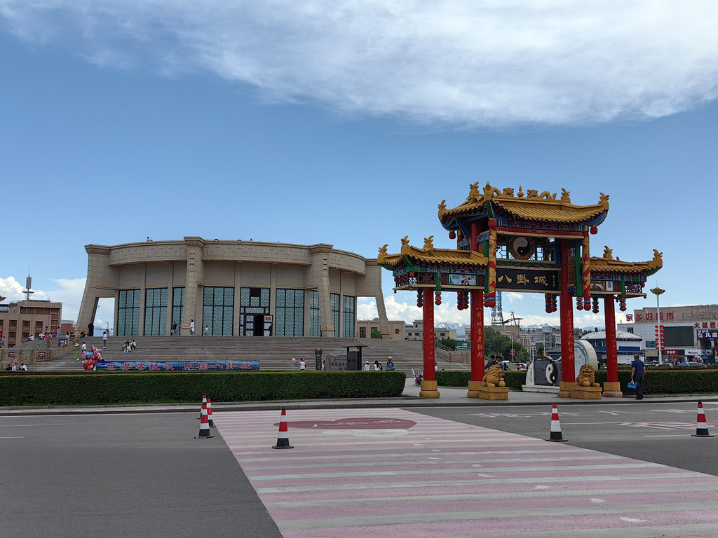 新疆伊犁州特克斯县为国家历史文化名城,县城布局如同一张巨大的八卦图,是世界上建筑正规、规模最大、保存最完整的八卦城。以广场公园为中心,八条街道由中心放射性排布,四条环道围绕中心组成间隔350米的3个同心圆。八卦城内的道路环环相连、条条相通,被上海吉尼斯总部授予“现今世界最大规模的八卦城”。