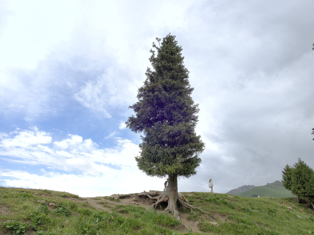 天界台是景区河谷草原与高山草原的“分水岭”,取“人间天堂入口、天上人间之界”的寓意。站在天界台上俯瞰,莽莽草原层层叠叠广袤无垠,天山雪峰延绵不绝气势磅礴,蓝天白云之下,天山云杉如黛,空中苍鹰翱翔,好一派高山牧场的壮美画卷。