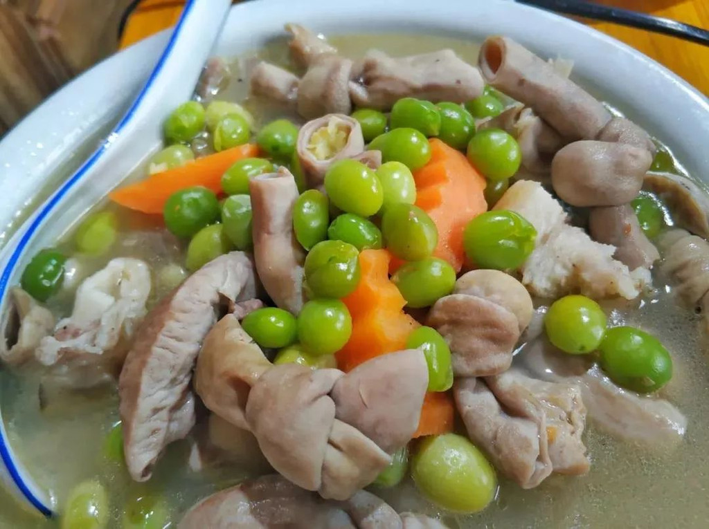 所谓银杏宴,就是从主食到菜肴都以银杏村特产“银杏果肉”入菜,推荐其中最有代表性的两道菜——银杏炖鸡,别名翡翠凤凰汤,另一道则是银杏炖小肠。