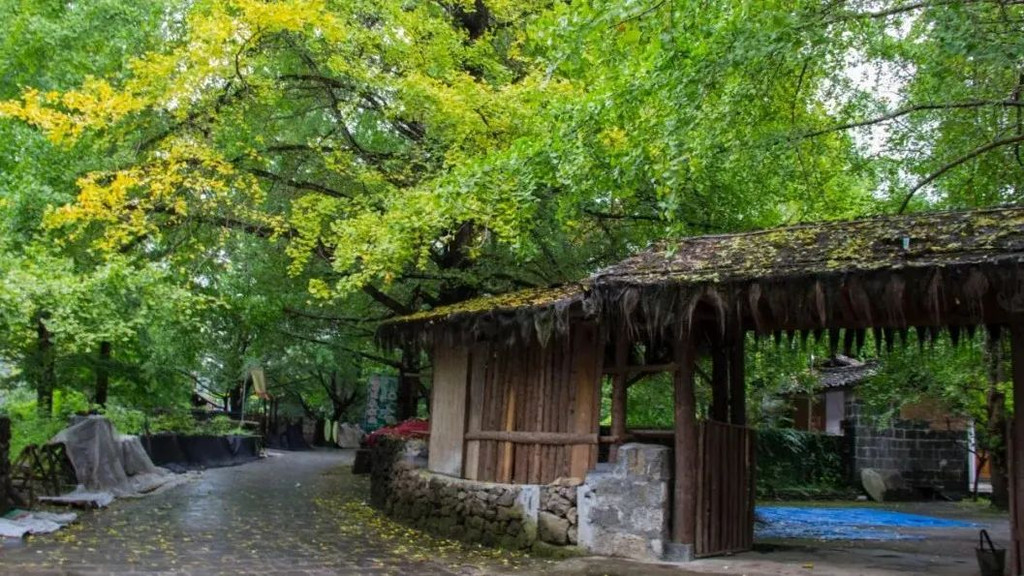 银杏村的银杏树分布非常广,百年以上的银杏树1200余株,树冠庞大,随处可见银杏叶铺成的“黄金地毯”。