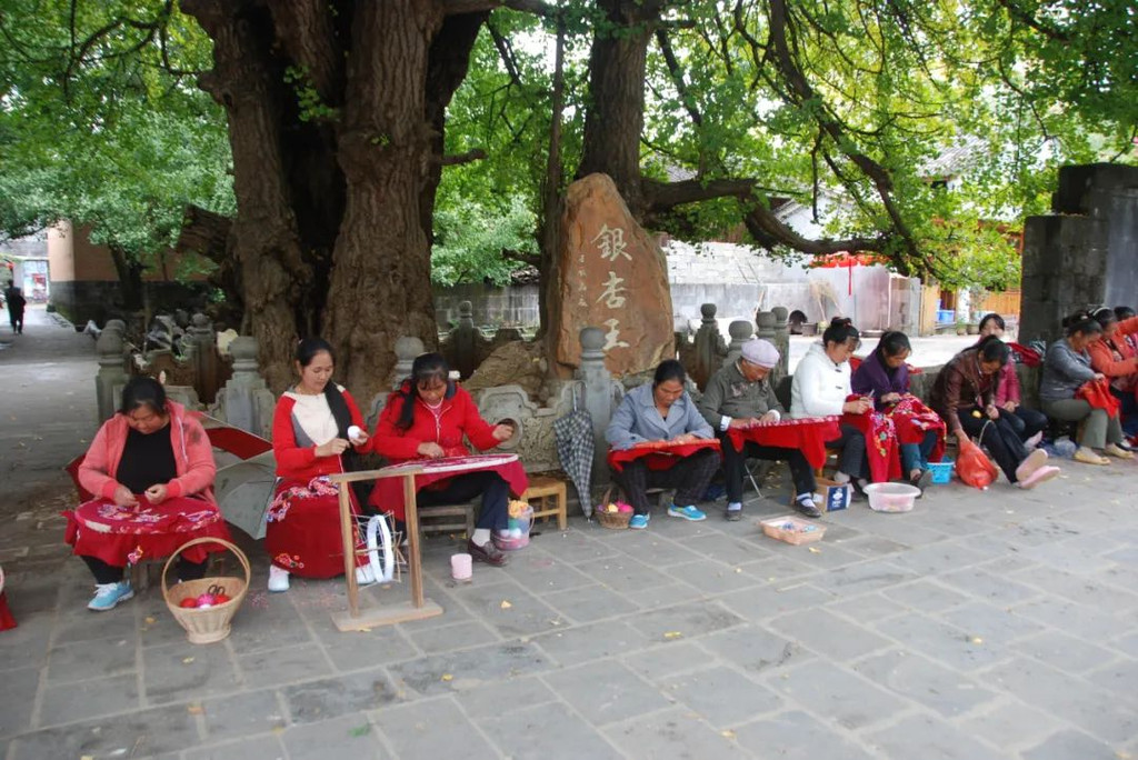 在银杏村中,还有一棵雌雄同株的千年古银杏树——银杏王,经过千年生长,树干非常粗壮,需要多人合围才能抱住,银杏叶也依然繁茂,每年都开花结果。