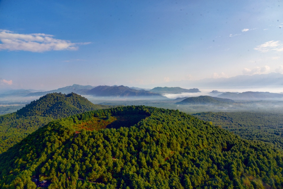 说腾冲的火山群规模最大,究竟有多大呢?这片火山群共有97座新生代火山堆,为我国的四大火山群之一。这么说可能还不够形象,可以和同样属于四大火山群的其他火山群做对比,比如五大连池就有十四座火山,这么看来腾冲的火山群规模确实很大。本想着那么壮观的景象要是能航拍的话必然十分壮观,奈何这里不允许航拍,不过这里有更好玩的娱乐方式,这便是热气球,不通过无人机,而是通过自己的双眼,实实在在地感受“上帝视角”。