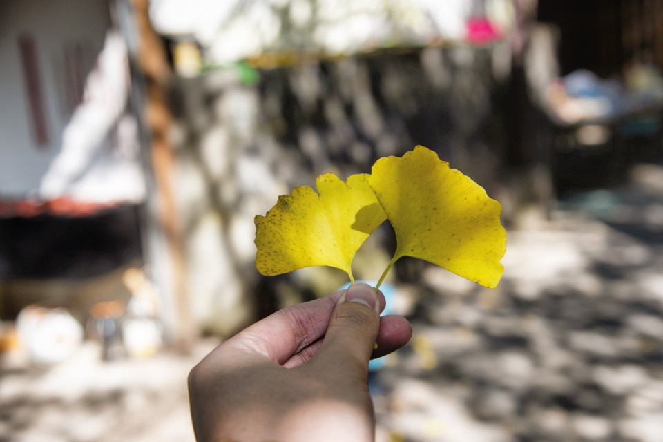 随手捡了两片银杏叶,继续欣赏这份秋日的美,都说银杏村是“村在林中,林在村中”,这还真不夸张,今年又到了银杏村赏银杏的最佳时节,不管你去不去,那抹金黄都在这里等你。