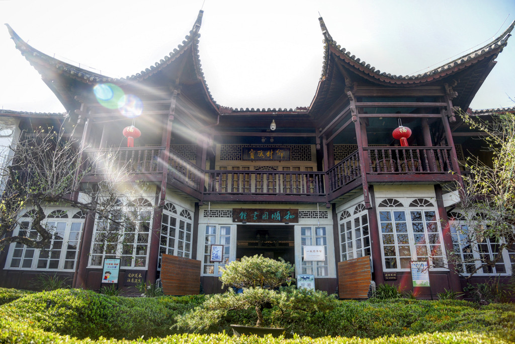 同时图书馆也是一栋精美的建筑:中式的牌楼式大门与西式的中门交互呼应,和谐却不突兀,园内花木扶疏,布局也相当典雅,二层五开间木结构的主楼立于花园背后,正面两侧还有两个突出半六角亭,建筑结构十分新颖,藏书楼则在最后,不少古籍就藏在这里,不过不能随意进去。