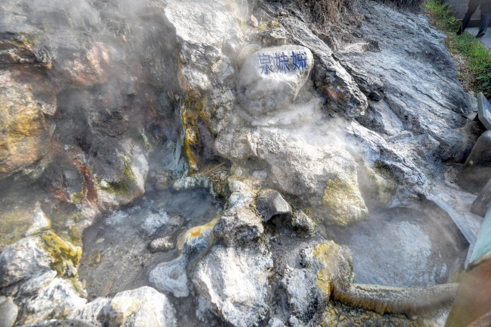 旁边不远处的姊妹泉就有明显的泉华裙,两口泉相生相依,就像双生的两姐妹一样,由于两个泉水挨得太近,也被当地人称为“眼镜泉”。此外,热海景区里面还有很多神奇的泉水,比如一直流水宛如打鼓的鼓鸣泉等等,不过得友情提示一下,热海里面的温泉大多都是沸泉,水温基本都在90摄氏度以上,且除了怀胎井之外其他的温泉均不适宜直接饮用,因此切莫靠得太近,谨防烫伤。