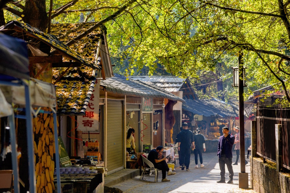 本以为开发成景区之后的银杏村就和很多所谓的古镇古村一样,基本没有本地人,全部都租给了外地人来做生意,卖着雷同的义乌小商品,这样的古镇其实已经死了。银杏村则不然,每家每户都有着不同的安排,卖小商品的、做农家乐的、开茶馆的、还有一些诸如银杏果等当地特色小吃,甚至地里都还有着庄稼在生长,充满了烟火气,这也是我喜欢银杏村的原因之一。好玩的是,村里共计820户村民,世居的全是汉族,这在云南这个少数民族聚集地并不是一件常见的事情,也与前文说的开荒有关。