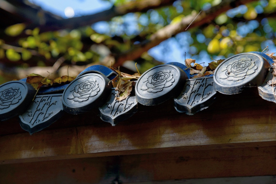 我不喜吵闹,于是避开人群走到村落深处,这里的银杏村是宁静的、祥和的,有着截然不同的风貌:树叶随着秋风飘落,铺满了村中的屋顶或是巷道,村中的围墙都不高,一个不经意间抬头,温暖的秋阳透过交错的间隙,将斑驳的光影投落在青砖黑瓦之上,继续前进,则又有脚踩在松软的银杏叶的沙沙作响,也许这就是属于银杏村的秋日童话。