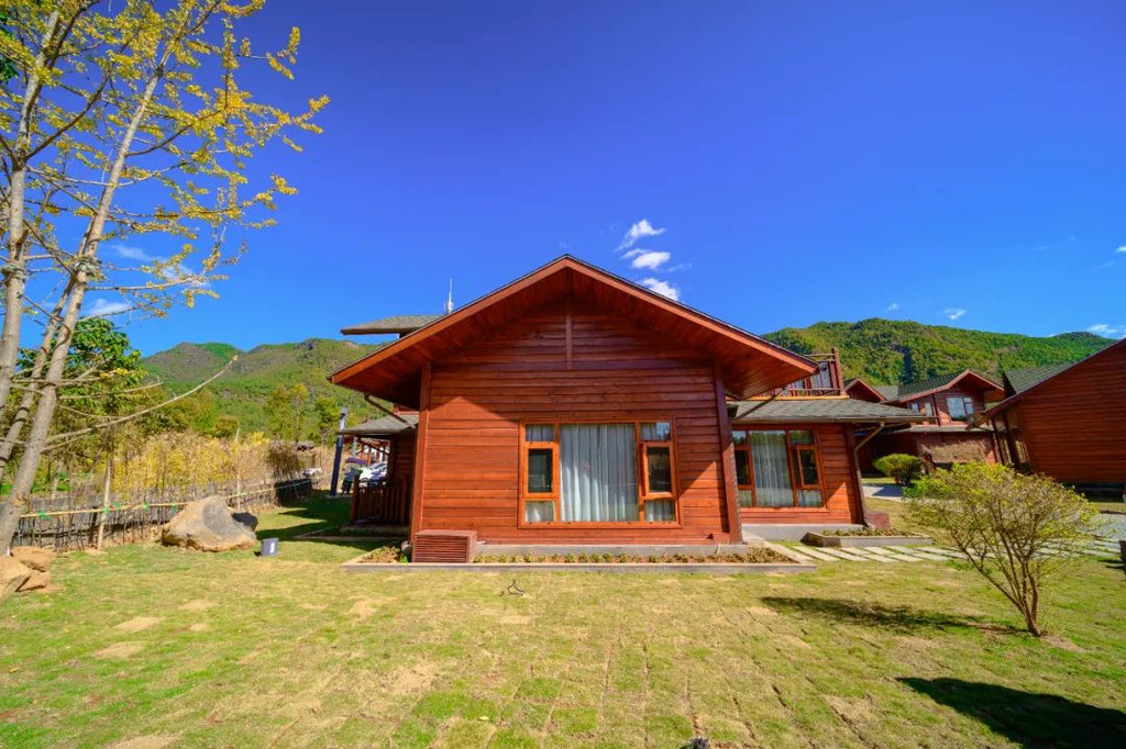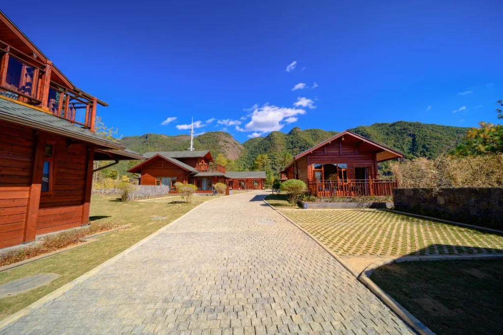 悬崖木屋酒店建在距离银杏村南侧的龙川江峡谷之上,错落有序的分布。