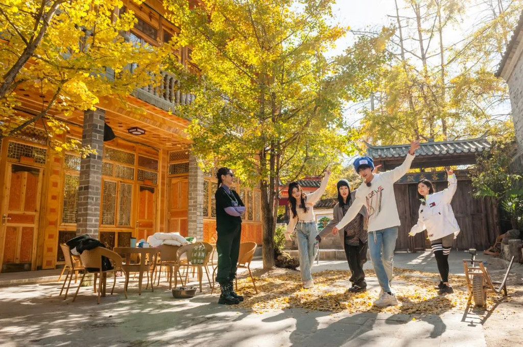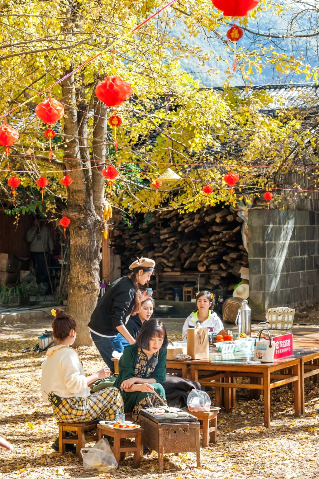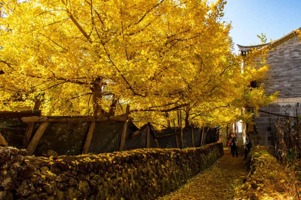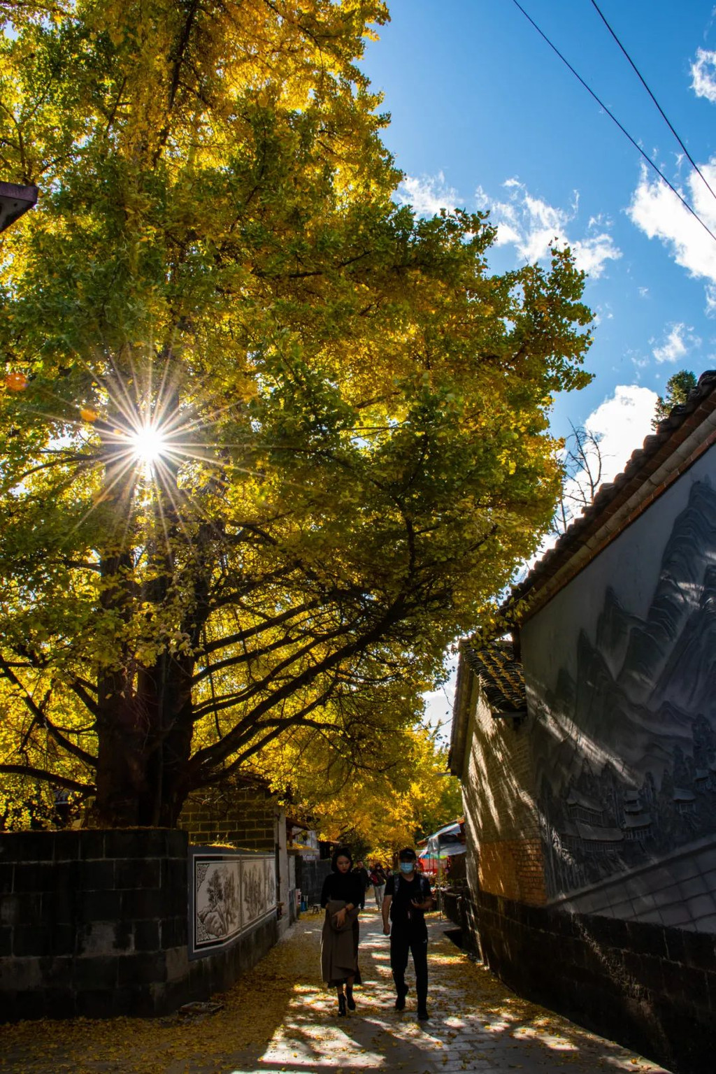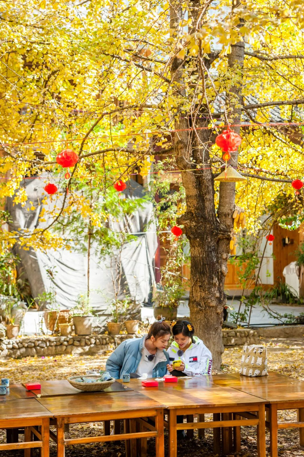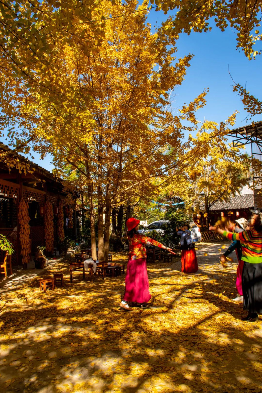 他们游走在银杏树下,在错综复杂的小巷里拍摄属于自己的时尚大片,在充满梦幻之感的银杏村里,看银杏叶飞旋。