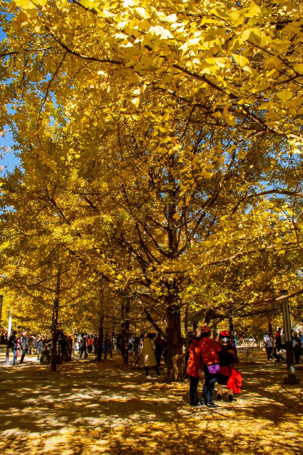这样的美景唤醒了成人心底深处的童心和童真,特别是中老年人,他们在银杏树下嬉戏,玩的不亦乐乎,重新体会孩提时期的快乐。
