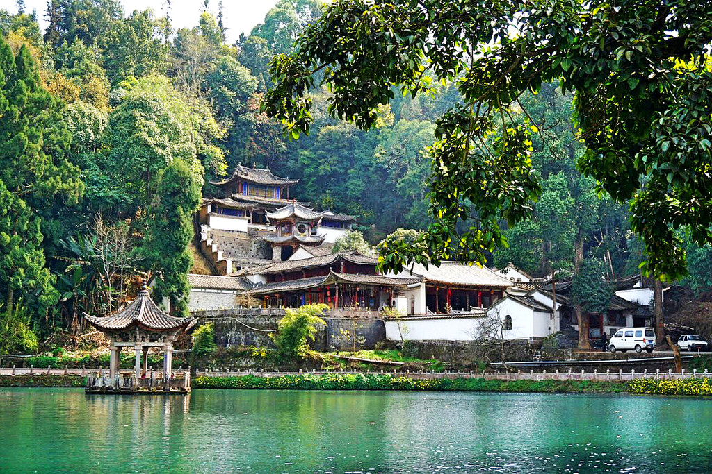 元龙阁:建于明代崇祯年间,清朝乾隆二十七年(公元1762年)重建,是儒、释、道三教合一的道观。元龙阁前面为碧波荡漾,水体澄澈的龙潭,背后是名木古树参天的黑龙山。