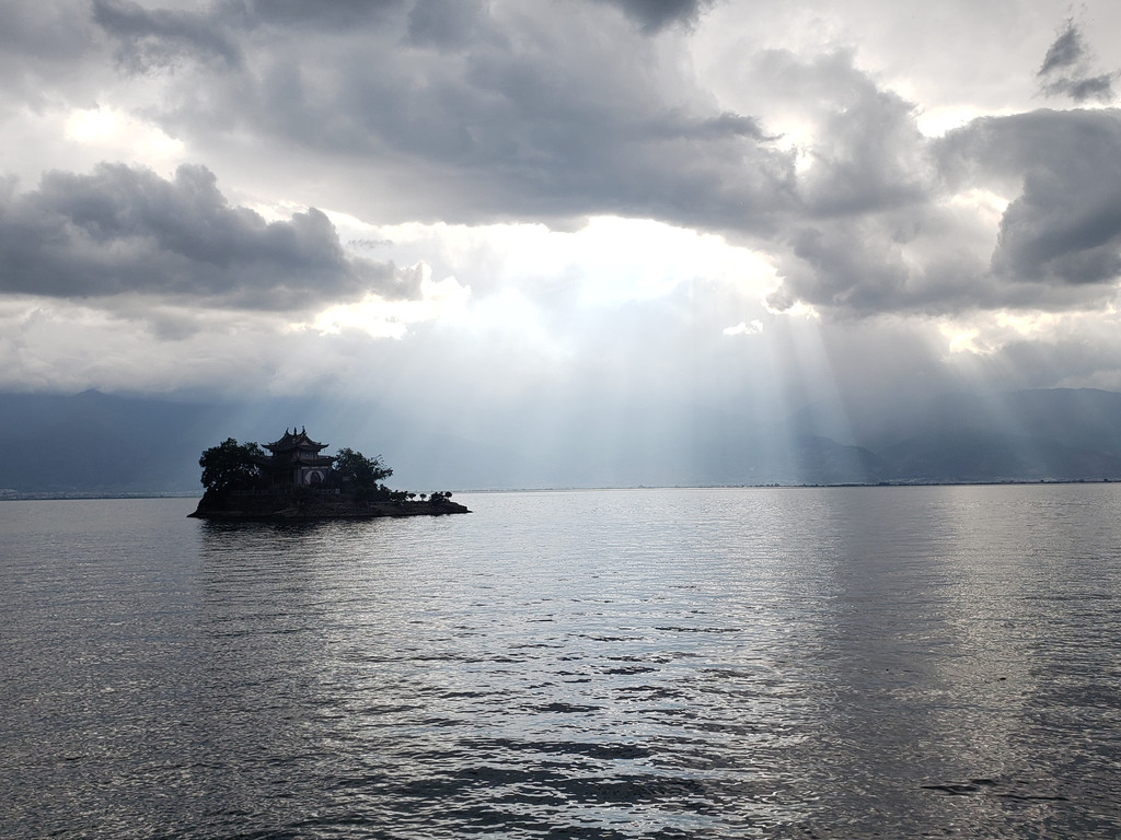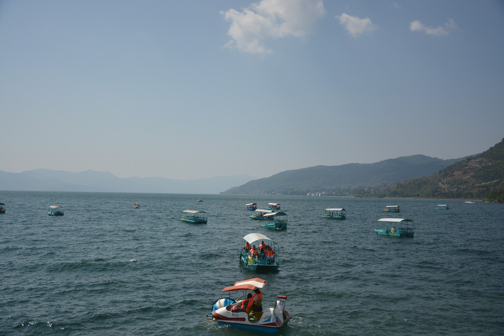 D12:今天已是我们出行的第12天,明天同行小伙伴们就将结束他们的行程,先行返回魔都,而我们四人将继续滇西行,目标:香格里拉!今天以休整为主,上午舒服的睡个自然醒,早餐后,在阳台上惬意的喝喝茶,嗑嗑瓜子,聊聊天,发发呆。中午在双廊古镇上觅食时,顺路去了早就名声在外,位于古镇内的杨丽萍太阳宫,虽然不需要买票,但必须消费才能入内参观,坑!果断放弃。午餐后,我们沿着洱海东岸一路向南,继续我们的环洱海游。