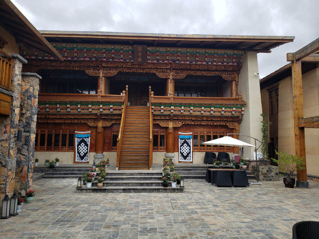 沿着G214国道,过虎跳峡镇后不久,我们驶上了新修建的还未全线通车的丽香高速前往香格里拉。等丽香高速全线通车后,从丽江到香格里拉的车程将从原来的5、6个小时缩短至2个小时左右,而且路况也将产生质的飞跃,到那时,前往香格里拉将不再是一件艰难的事!由于高速公路的通行,使得我们提前顺利的到达独克宗古城。入住古城中一家非常藏式风格的酒店:非梵酒店。