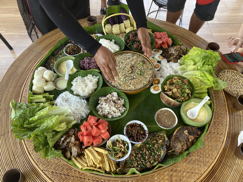 早餐后按原定行程前往沧源游玩,没想到半路,在进入沧源的公路检查站被拦,原来中缅边境的孟定口岸位于沧源县,由于疫情防控的原因,需通行证才能进出沧源县,没办法,只能折返。回到双江已近中午,寻觅到一家佤族特色的饭店——佤莱庄园午餐