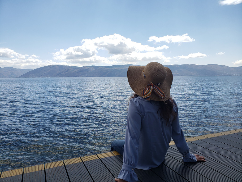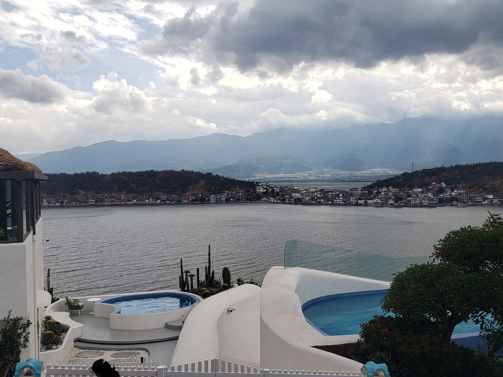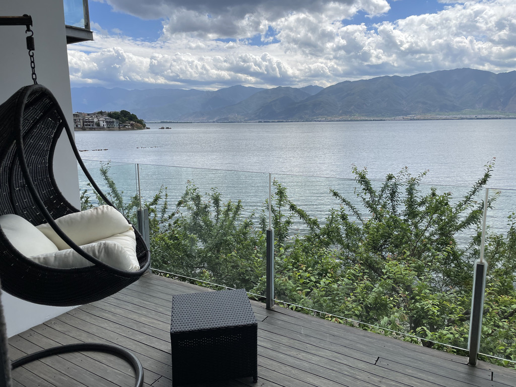 下午,到达位于洱海东岸的双廊古镇的善水海景客栈。客栈依海(湖)而建,坐在客房超美的观景阳台上,听着洱海的波涛声,远望对岸蓝天白云下的苍山,享受!