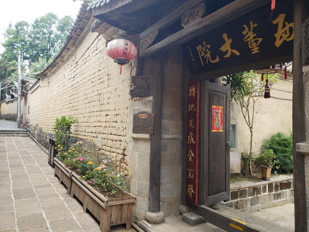 西董大院整个建筑群占地18亩,主人是腾冲的名门望族董氏家族。董家热善好施,在抗战期间曾捐赠三架战斗机,助修滇缅公路等义举,并捐款捐物支持中国远征军参加抗战。抗战胜利后,又捐助建造了国殇墓园,以纪念在抗战中牺牲的中国远征军将士。如今的西董大院已成为经营翡翠、美食、古村落保护为一体的免费旅游景点。
