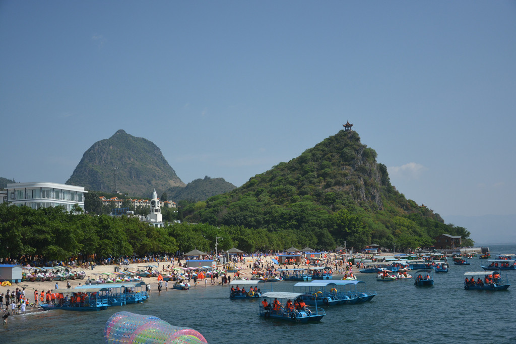 D2:早餐后,我们出发前往距离昆明市50公里,属于玉溪市的抚仙湖禄充景区。由于当天正值5.1小长假期间,但我觉得对于云南众多的经典景点来说,抚仙湖还是个比较小众的景区,我原先预计不会遇上大客流,但最后事实证明,我还是低估了广大人民群众的旅游热情。因受全球疫情的影响,在境外游尚未开放之际,小长假的国内游各景区都人满为患,景区停车场入口车辆大排长龙,停车位一位难求,在一段考验耐心的排队和寻觅后,终于在一个偏僻的角落找到了一个停车位。
