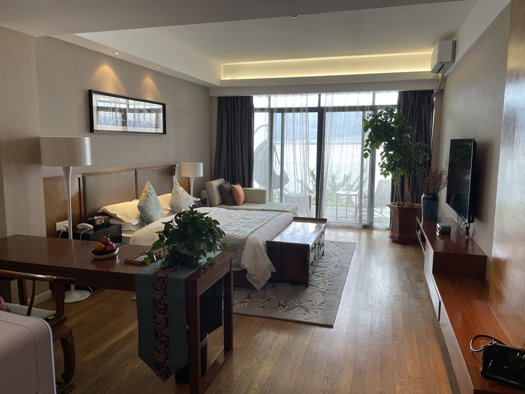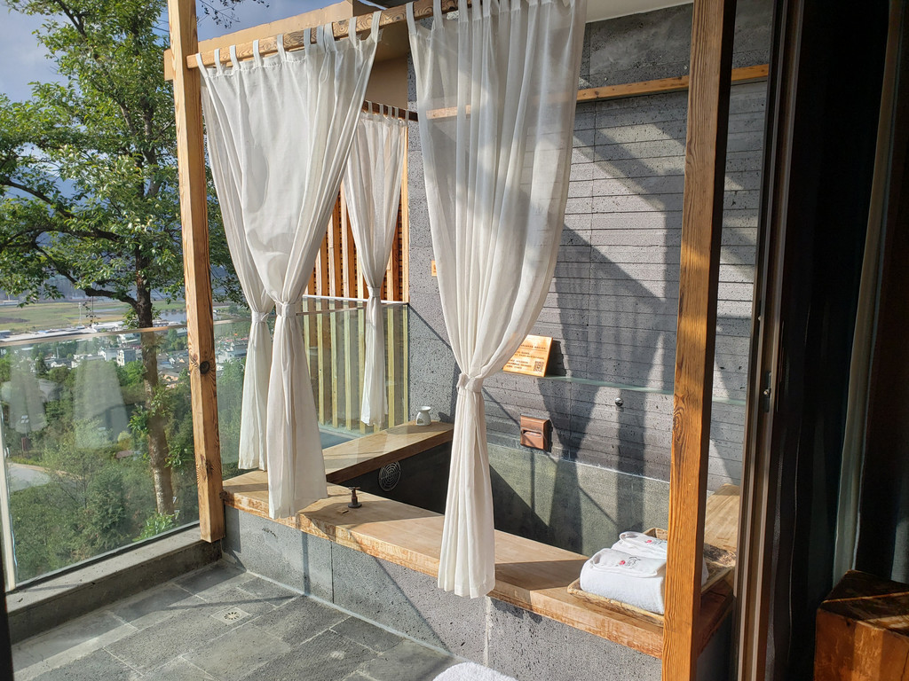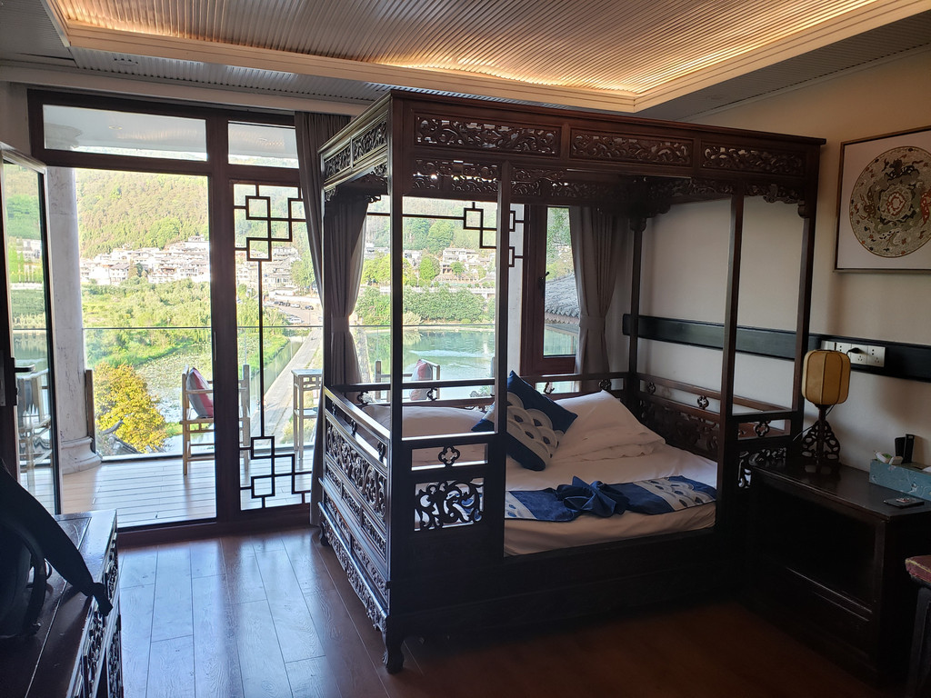 古色古香的装修风格,落地大窗让美景随时呈现在眼前