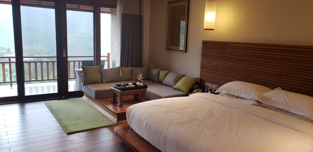 酒店位于云雾缭绕的高山茶园间,满目绿色,宛如仙境。