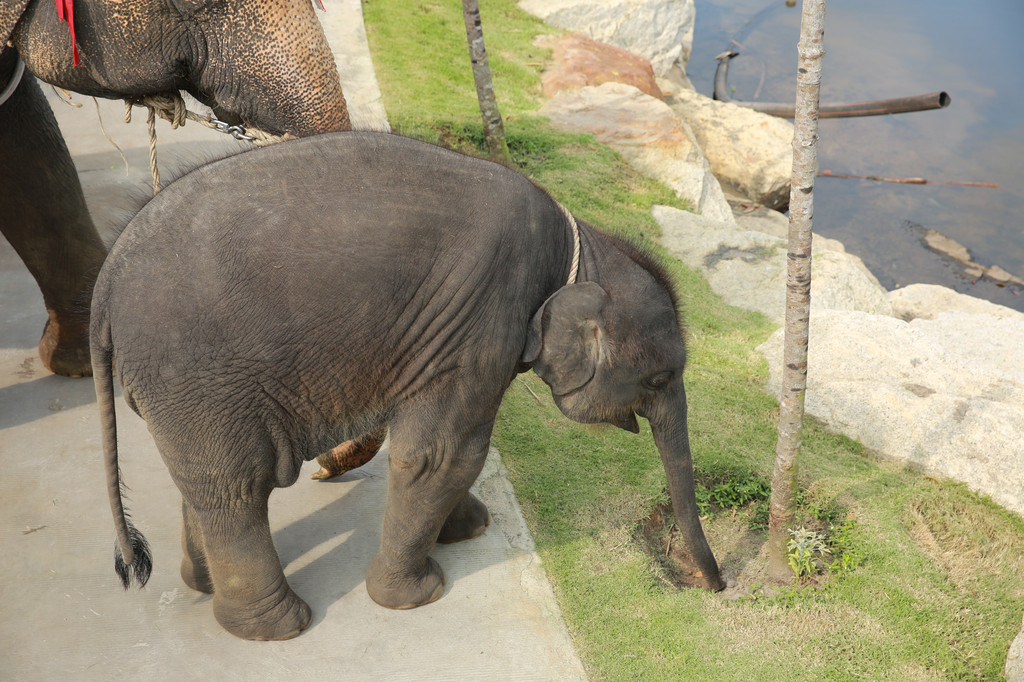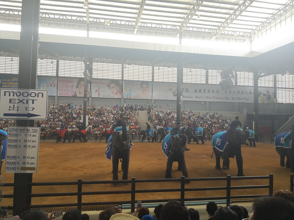 大象表演(进去找座位前可以和大象拍照,每个大象100B,多种动作,非常好玩,人也多)