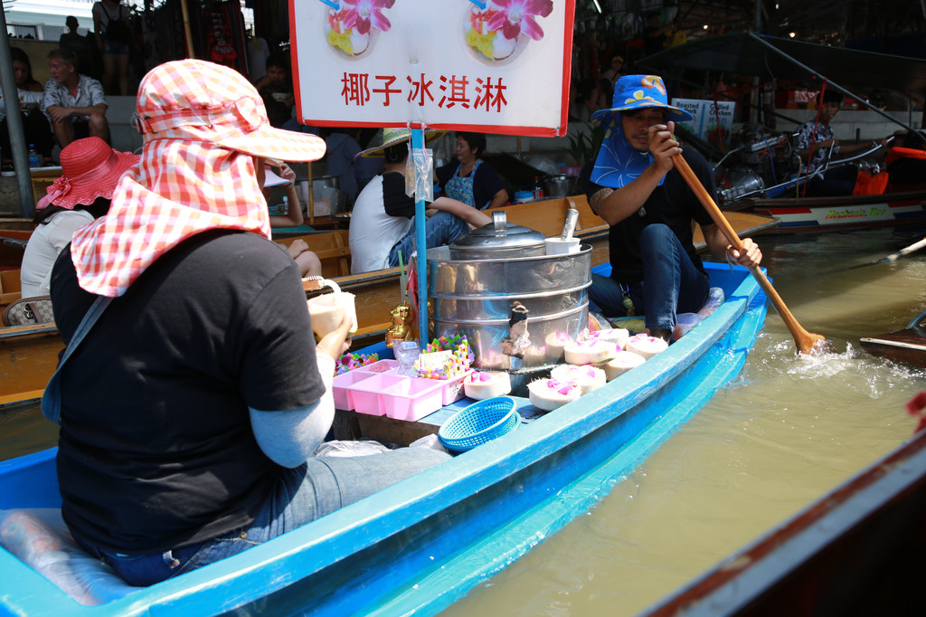 俗称的“水上集市”,是个和当地居民生活有着密切联系的场所。集市中,一条条卖货的小船在运河上交错往来,河岸边一家家水乡居民的住宅,构成了一幅令人深感亲切而又典型的曼谷印象图卷。还有一个可寺庙参观。