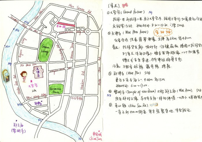 唐人街坐Silom线,Saphan Taksin站2号出口,坐湄南河快船(Chao Phraya Express Boat)在5 Tha Ratchawongse下船。BTS没有人工售票,有窗口给换零钱,票价一张15-40铢。自助售票机旁边有票价图,标明了从当前站到目的地站的价格,按下对应价格。使用方法和国内地铁一样。