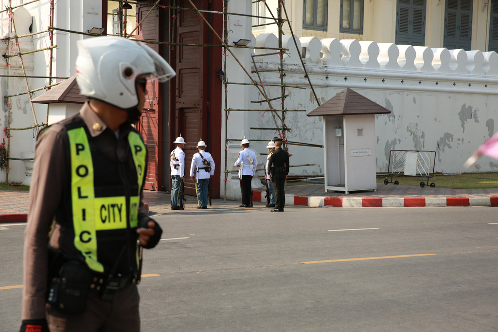 坐BTS的Silom线在Saphan Taksin站下车,Exit 2; 然后坐湄南公交船Chao Phraya Express Boat,班船认清旗帜橙色公交船到Tha Chang N9码头:电子屏显示船到时间。穿出大排档区就可以看到大皇宫,