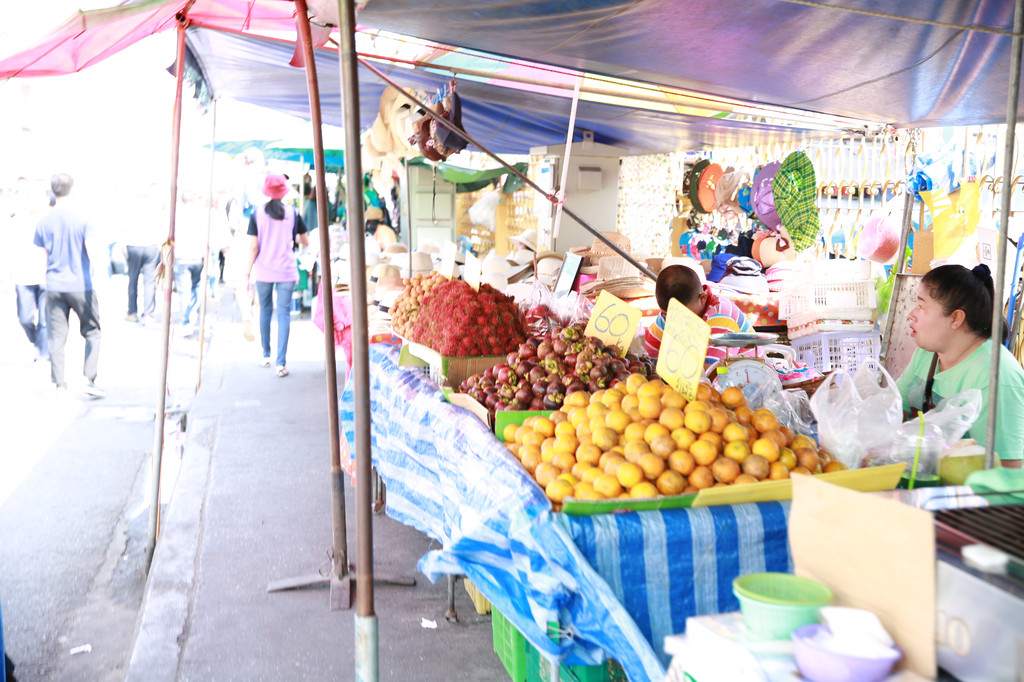 随声携带泰铢,市场、街边小贩、公交车、双条车、出租车等交通工具只收现金;