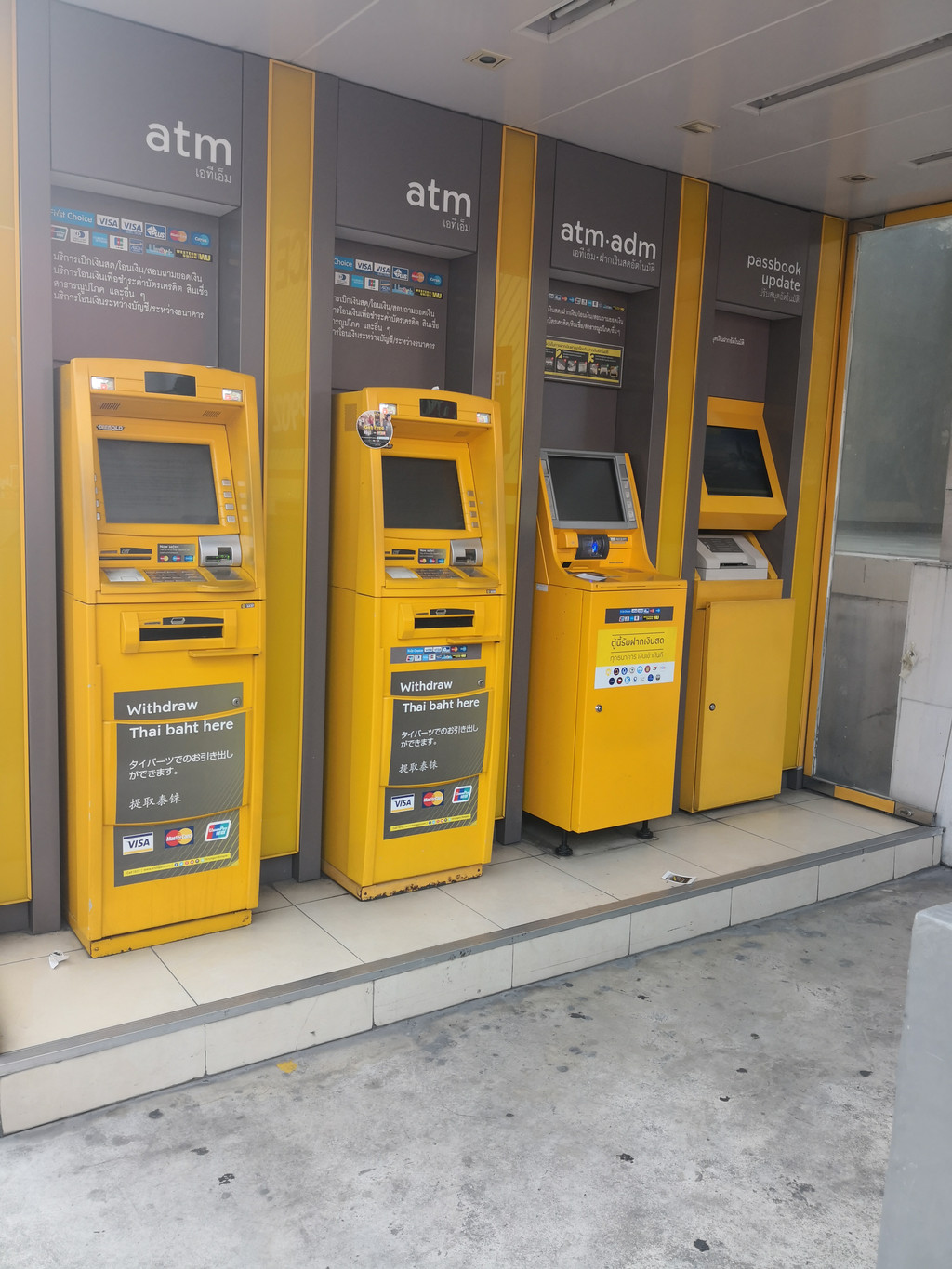 注:泰国ATM机的银行、发卡银行两边都会收费用。选择ATM机,主要看有没有手续费优惠(有些泰国银行ATM机,第一次取会免手续费)。不要在ATM上查询余额,收取手续费;如果查询存款余额,显示按当时中国银联的外汇牌价计算出的泰铢金额,而不是人民币余额。