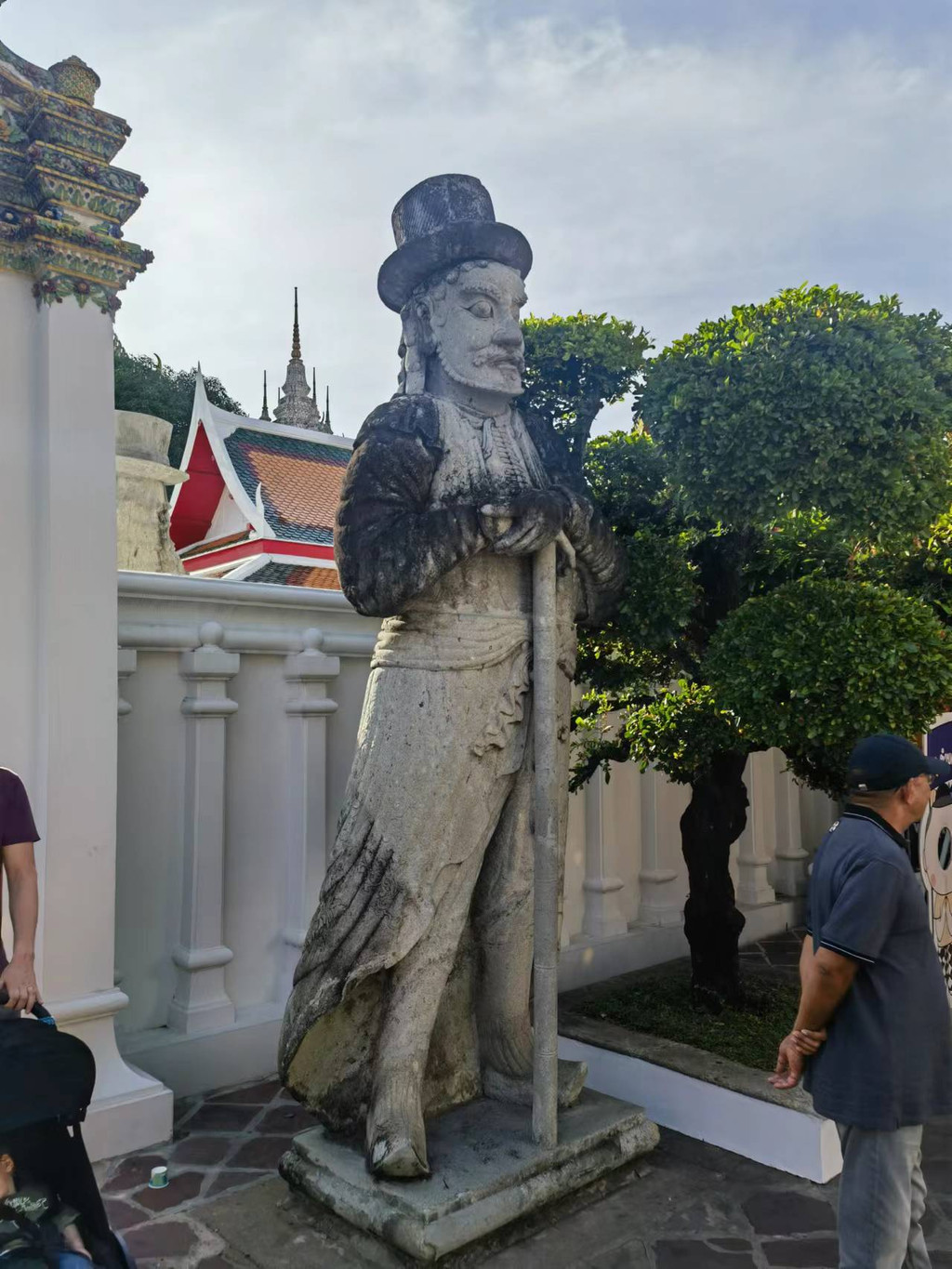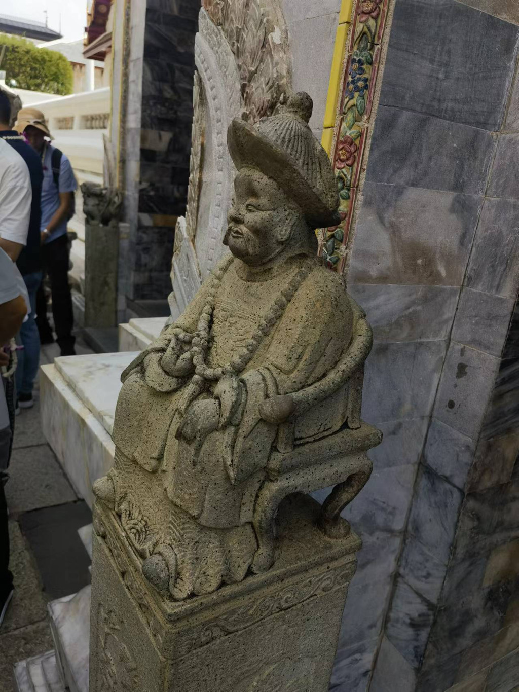 最后,泰国皇宫和卧佛寺都有很多中国的石像生,就是石头雕刻的小动物和人物,还有望天吼。但是按照中国古代传统,这些东西都是放在坟墓门口的,泰国人却都放在每个寺庙殿宇门口,用的也不是好石头,很多造型都很搞笑。不知道是个什么来源,网上查了也没找到。