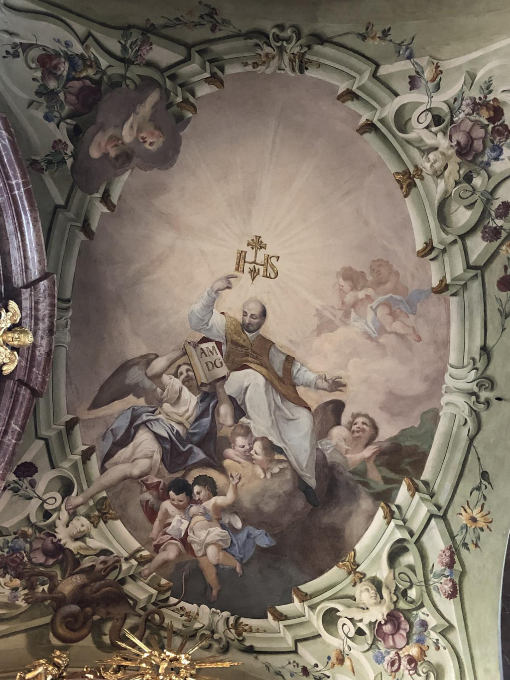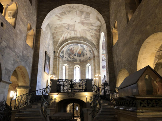 参观完城堡,沿着坡路往下就到了圣尼古拉教堂,教堂内部的彩绘很漂亮