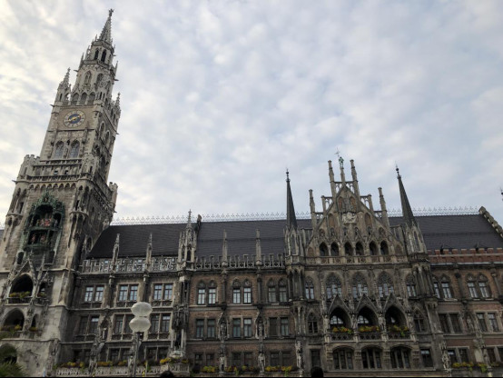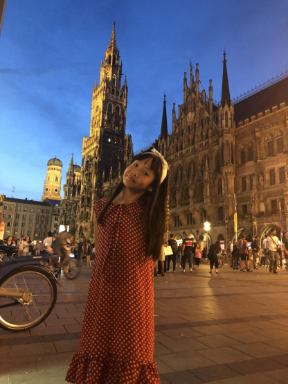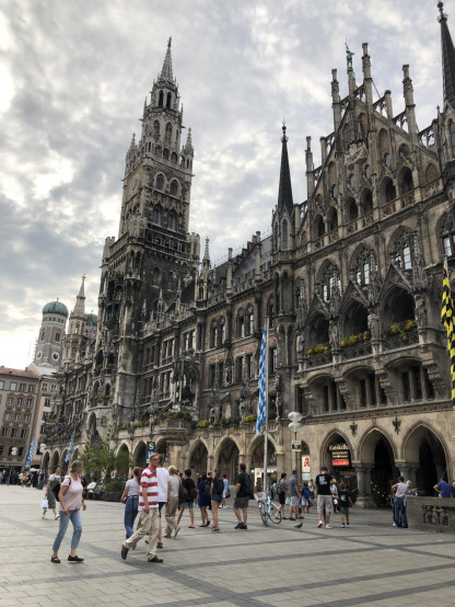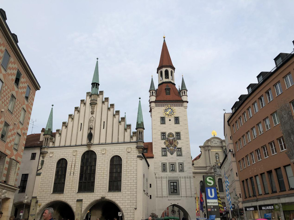 (三)第三天,在麦琴根名品村买了一个上午的东西,简单吃点东西,就又驱车前往慕尼黑啦,在酒店办理完入住后,就去慕尼黑著名的玛林广场逛加解决晚餐。玛林广场及周边有1638年的圣母玛丽亚黄金雕像和19世纪的“鱼泉”(Fischbrunnen),新市政厅大楼(Neus Rathaus)(顶部是慕尼黑象征性标志慕尼黑小孩“Munchner Kindl”),老市政厅大楼(Altes Rathaus)(现在是玩偶博物馆),彼得教堂(慕尼黑最古老的教区教堂,钟塔被成为“老彼得”),圣母大教堂(为圆葱形圆顶的屋顶,据说教堂地板中心位置有个“魔鬼的脚印”),阿桑教堂(Asamkirche),功勋大厅,又叫统帅厅(Feldherrnhalle),特阿蒂那教堂(Theatinerkirche)。因为是晚上也不知道拍的是哪个,就是胡乱逛了逛。