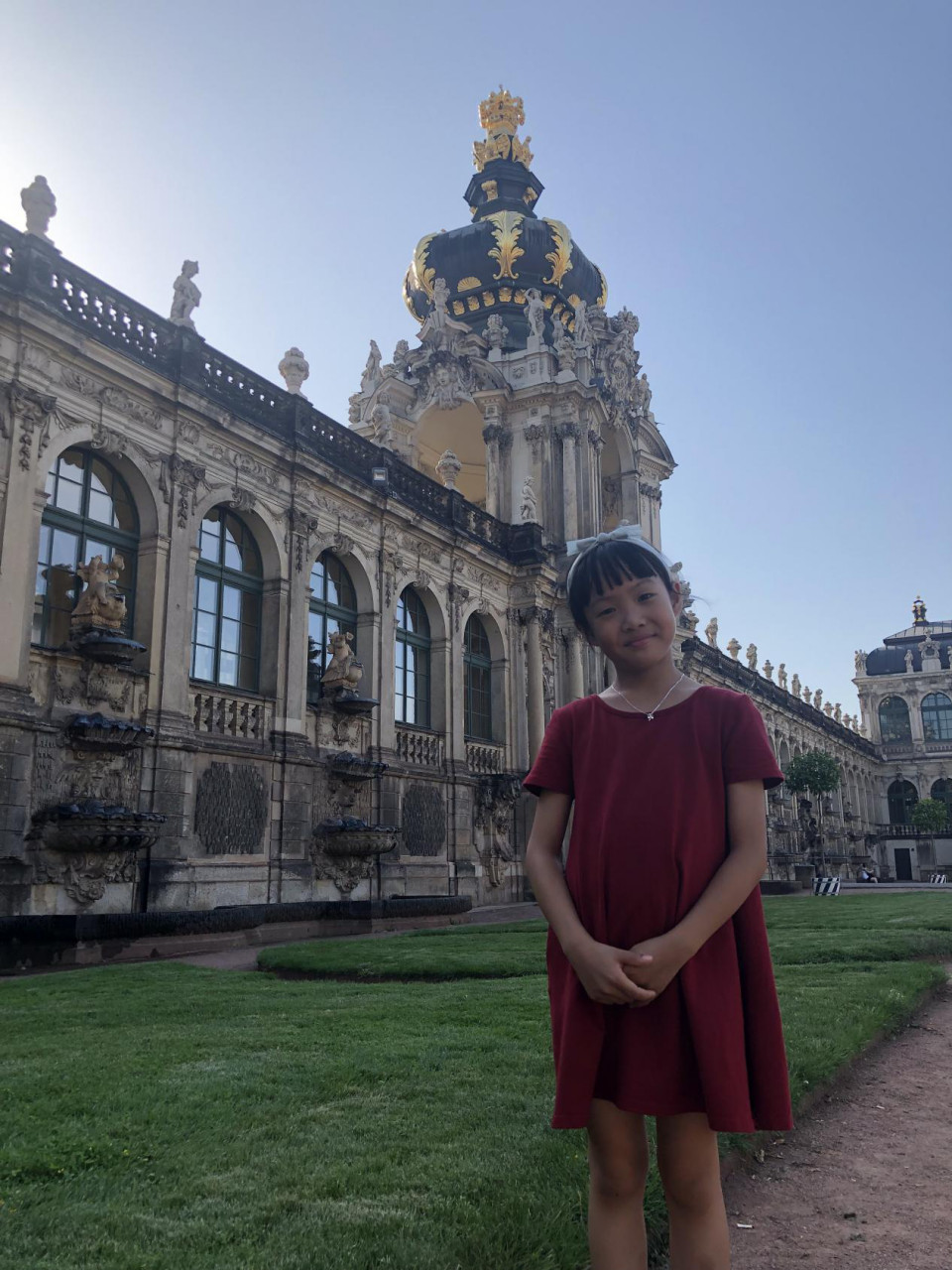 (一)第一天早上,从布拉格火车站坐火车去往德累斯顿,乘坐的是德国火车,比起奥地利和捷克的火车很舒适。到达德累斯顿马上乘坐公交车去往租车公司提了车,开始了我们的德国自驾之旅!当天顶着烈日,我们先吃了午饭,之后就马不停蹄的参观了茨温格宫、绿穹博物馆,到了傍晚去超市采购了一批食品后,驱车一个多小时去往网上入住的“城堡”民宿。