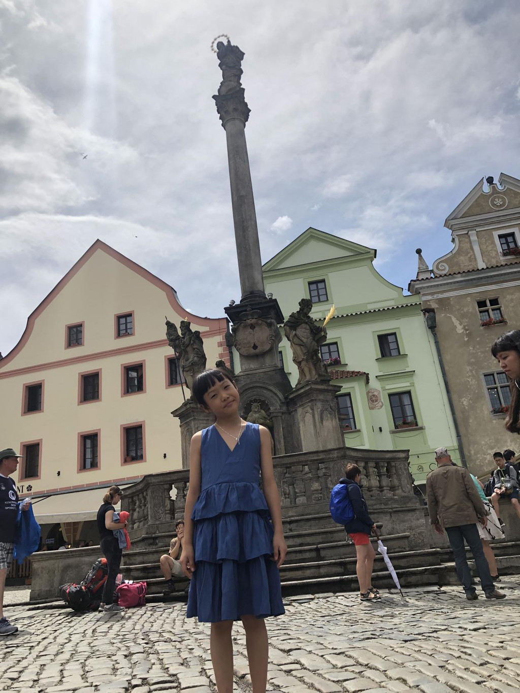 小镇广场及中间的柱子和喷泉