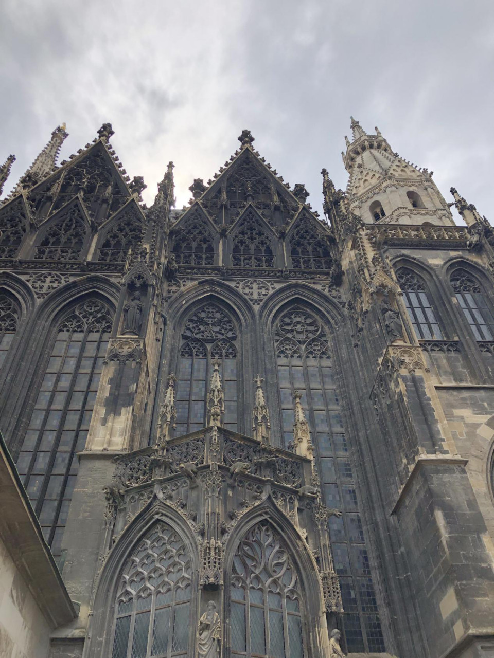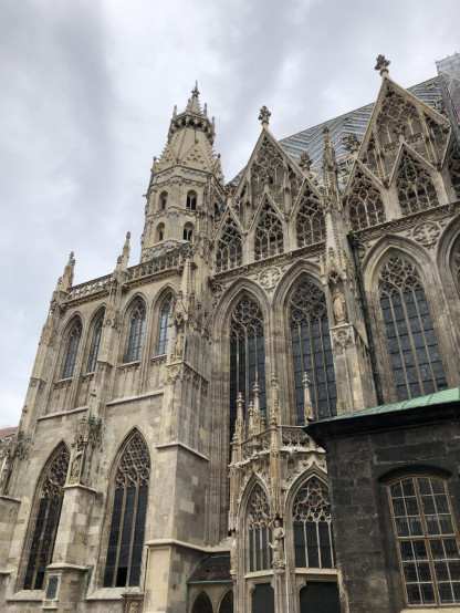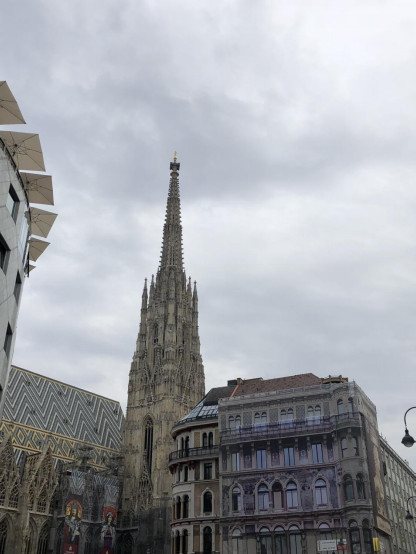 4.史蒂芬大教堂(Stephansdom),维也纳最出名的教堂,也是欧洲最好的哥特式教堂之一,外部最引人注目的是其高大的西立面和罗曼风格的顶部,南塔(Steffl)则是精致的哥特式建筑风格,教堂侧面的屋顶上用彩色瓷砖铺就了几何图案以及哈布斯堡王朝的徽章,这些“屋顶上的图案”是史蒂芬大教堂外观上最大的特色,教堂内的两排柱子将钟殿隔成三部分--中心中殿、左中殿、右中殿,中心中殿居中的是由安东尼.皮尔格兰姆雕刻的布道坛,上面有四个拉丁教父(安布罗斯、哲罗姆、格列高利和奥古斯丁)的形象,楼梯下面还有一尊安东尼.皮尔格兰姆的自塑像,没进去就在外面拍了几张照。