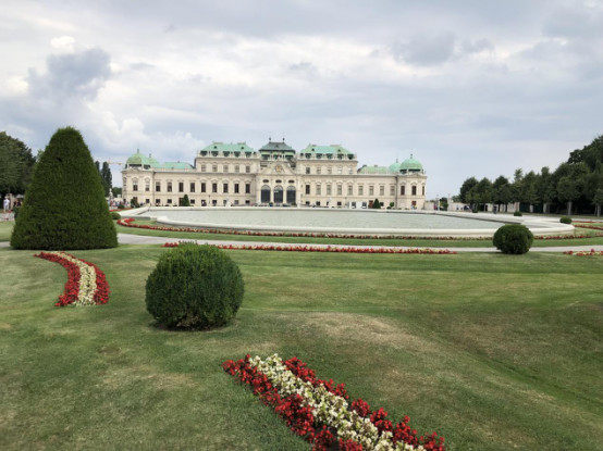 2.美景宫(Schloss Belvedere),巴洛克风格的宫殿,分为上美景宫和下美景宫,上美景宫主要参观宫殿建筑,现在的下美景宫是奥地利美景宫美术馆的所在地,奥地利的国宝画家古斯塔夫.克里姆特(Gustav Klim)的不少名作都在这里陈列,最出名的是《吻》,上下美景宫之间有一个花园,是维也纳人拍摄婚纱照之地,下美景宫的大门附近还有一个漂亮的广场,是“二站”胜利苏军纪念碑。可惜因为我们当天就要去飞机场了,只是从火车站坐车过去在外面拍了几张照,也没确实是上美景宫还是下美景宫。