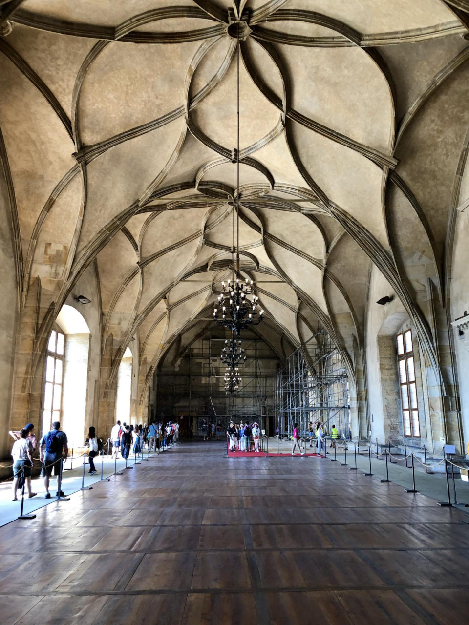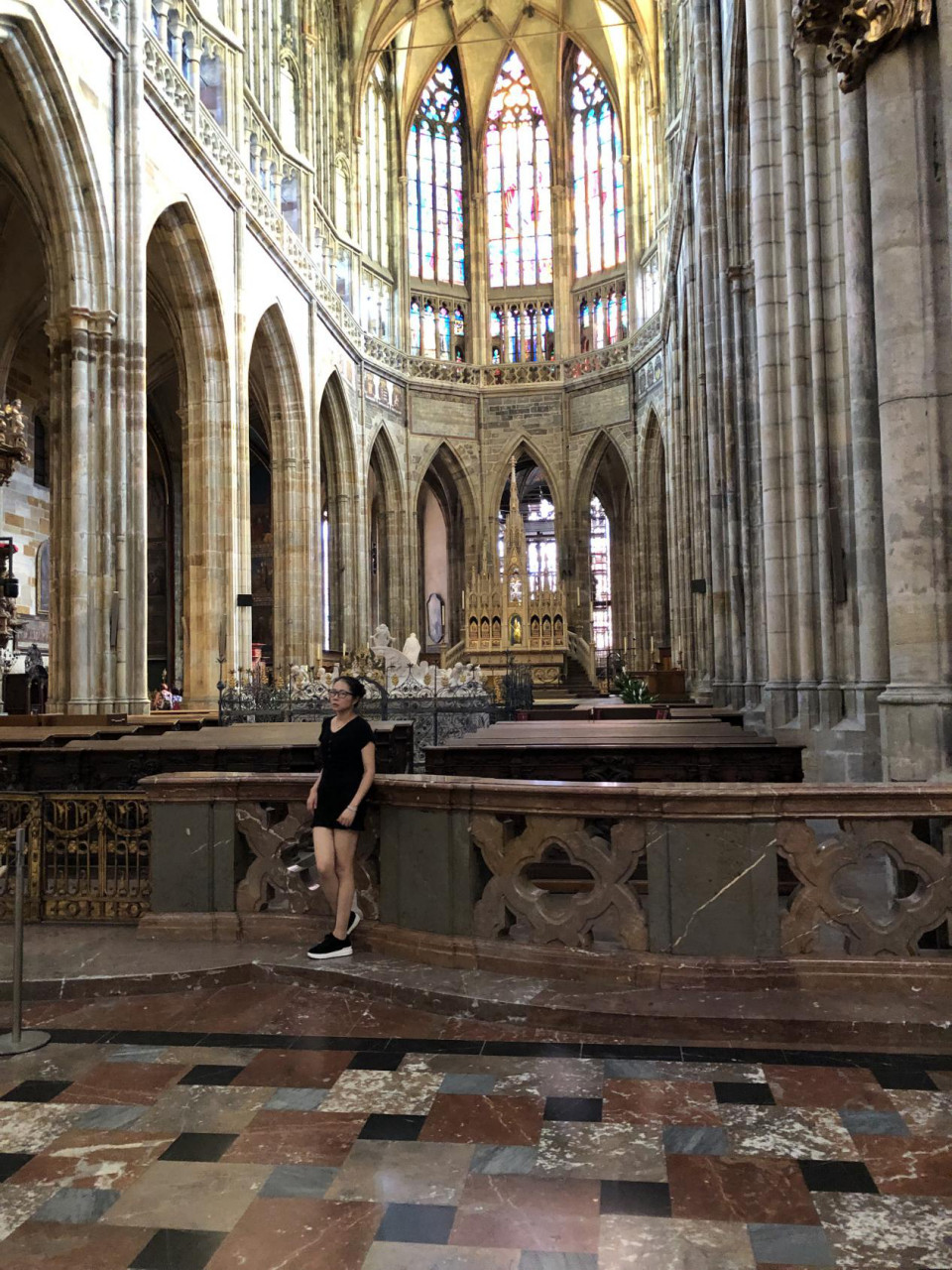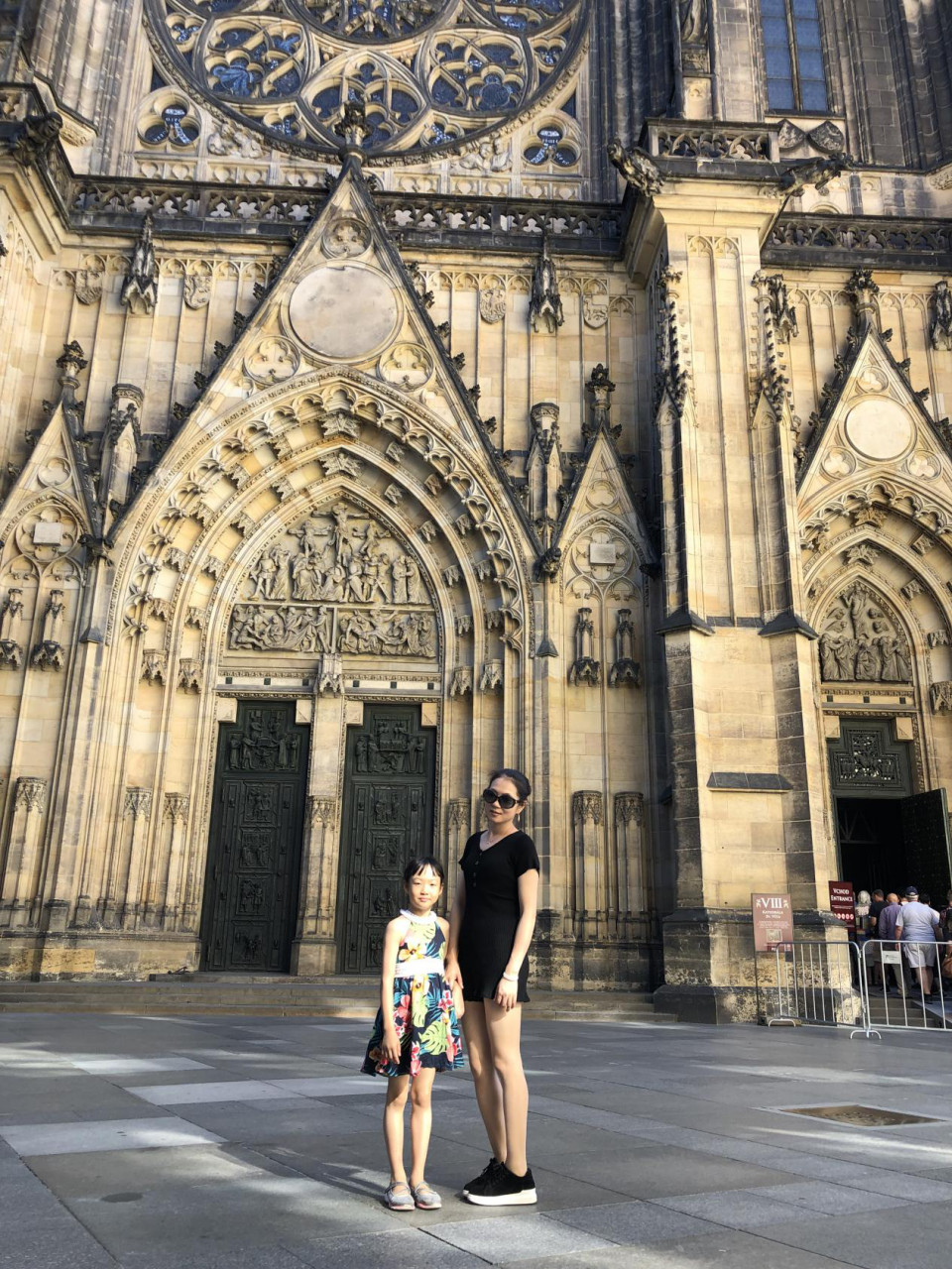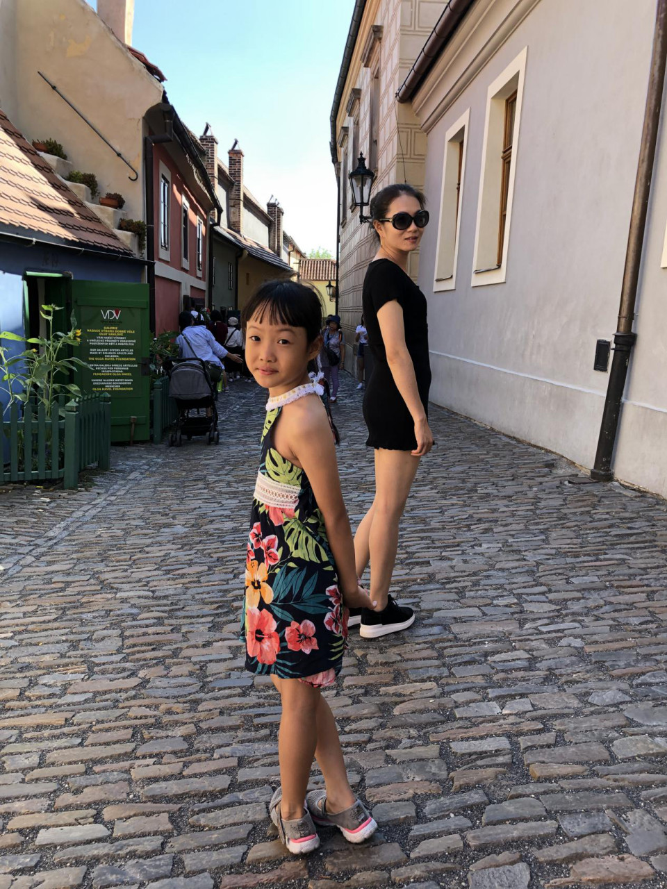 第二天,上午我们主要去游览城堡区,搭乘地铁A线于Staromestska站下,走城堡旁的旧阶梯,可直接通往城堡后门的玩具博物馆或者从查理大桥三部,经圣尼古拉教堂,转向Nerudova,再从一旁的阶梯拾级而上,可抵达有士兵站岗的城堡正门。实际上我们是坐公交车过去的,也没用很多时间,门票可购买短程票含旧皇宫、圣乔治教堂、黄金巷、达利博尔塔:1.圣维特大教堂(St Vitus Cathedral),从教堂西立面正中的门的两侧侧门进出,看点是教堂入口处的雕塑,主入口砂石墙的中央弦月窗上饰有亚盖隆的《耶稣受难》《基督衣旁争论》和《哀悼耶稣》以及教堂内的彩绘玻璃窗“穆夏之窗”;教堂内播姆斯主教的墓,位于侧殿,墓的上方四个天使,还有圣瓦茨拉夫小礼拜堂,在教堂南边靠近“金门”的地方;圣维特大教堂的南立面,有三个拱门,马赛克画中间部分上部是耶稣和六个圣徒,下侧左面是圣人瓦茨拉夫一世,右面是王后,左面部分描绘上天堂的情景,右面部分画着由绳索牵着的罪人被押送进地狱。2.旧皇宫,中央是Vladislav大厅,北面是骑士阶梯(Jezdecke Schody),是捷克总统宣誓就职的地方,大厅的西南角有一道门通往波西米亚大臣Ceske Kancelare的前办公室,议政大厅的中间是波西米亚国王的宝座。3.圣乔治教堂(Basilica of St George),是全捷克保存最好的罗马式教堂,教堂有巴洛克早期风格红砖外墙,教堂尽头靠近神龛处,有着巴洛克式的双重阶梯,楼梯前面是教堂创建者的陵墓。阶梯下面还有一个小拱门,可以看见12世纪的地下墓室。4.黄金巷(Golden Lane),是一条沿着布拉格城堡北墙的鹅卵石步道小巷,黄金巷22号是卡夫卡故居,尽头是一座三层小楼是导演故居。5.城堡监牢,走出黄金巷,导演家的对面就是。