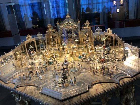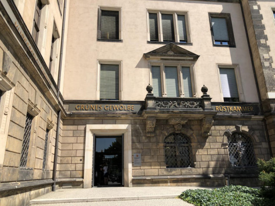绿穹博物馆(Green Vault,德语名Grunes Gewolbe),开放时间10:00~18:00,门票12欧元/人,和选帝候王宫(Residenzschloss)的联票19.5欧元/人。珍宝有“德累斯顿绿”(世界上最大的绿钻石)和雕有185个头像的核桃微雕以及装饰有红珊瑚的女神达芙妮银像和所有Johann Melchior Dinglinger的作品(“莫卧儿王朝的觐见”),有中文解说机提供,每一件藏品都介绍得很详细。