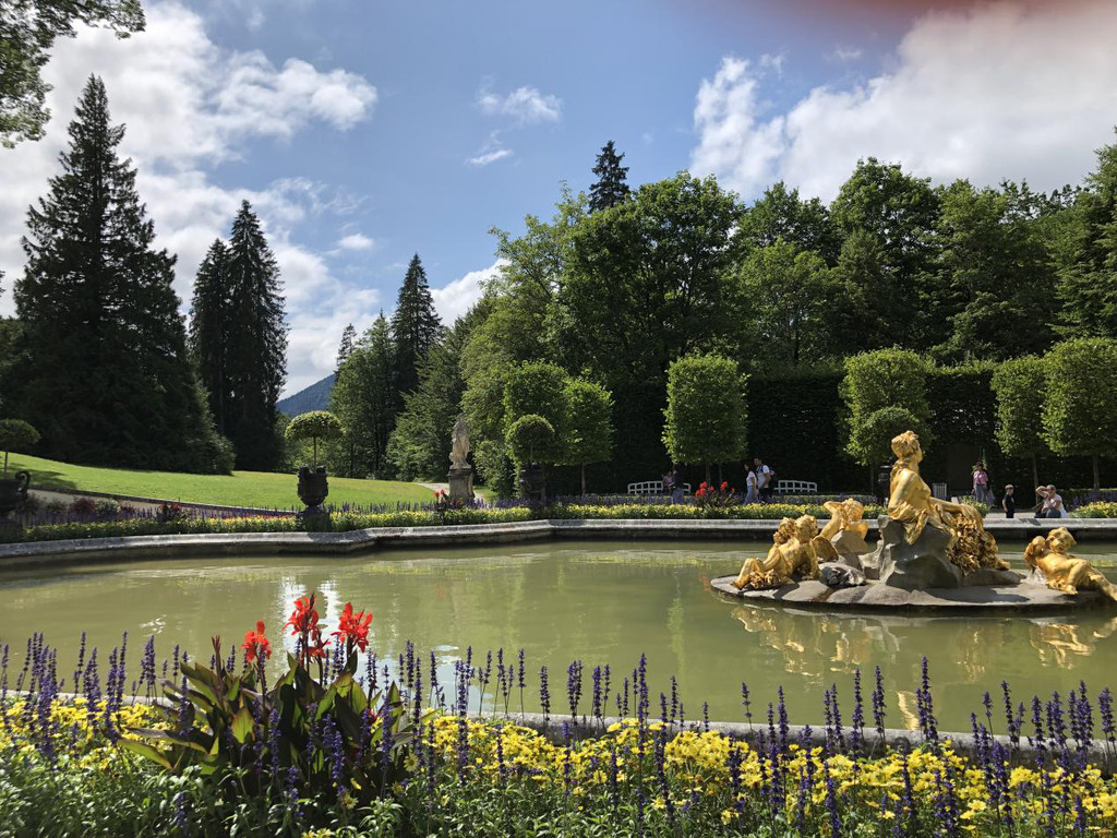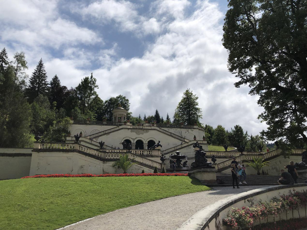 (五)今天的主题是路德维希二世,上午参观他还没有最终建好的新天鹅堡,下午去看他住的时间最长的林德霍夫堡,出发时还下着雨,在路上雨就停了,天亮起来了,中午太阳也出来了。