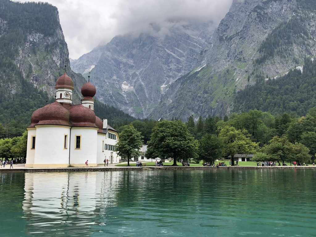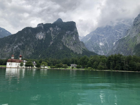 国王湖(Konigssee)位于德国与奥地利交界的小镇贝希特斯加登(Berchtesgaden)的,它是由最后一个冰河时期的冰川形成的湖泊,国王湖可看到德国第二高峰瓦茨曼峰的倒影,红顶教堂圣巴特洛梅修道院(St.Bartholoma),国王湖游船到Salet的船票是16.9欧元/人,去国王湖一定要早去,要不排队时间很长而且秩序很乱,太多游客了,估计是欧洲之行排队时间最长的一个景点。