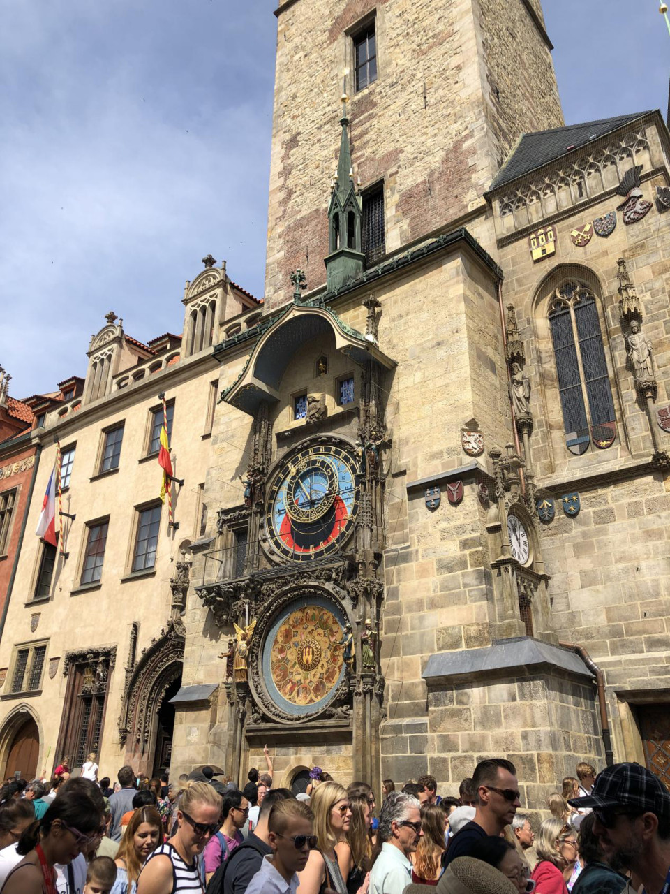 第一天我们主要参观了布拉格旧城广场和查理大桥:1.查理大桥,特别之处是桥上的雕像,第一座雕像是1683年完成的圣内波穆克像;2.天文钟,顺着查理大桥一端的步行街,就能来到天文钟所在的旧城广场,每天11点,天文中敲钟表演时间最长、场面最大;3.旧市政厅塔楼,就是天文钟所在的那栋楼,楼顶是俯瞰布拉格旧城区最好的制高点,登顶线乘坐电梯到5楼,检票后再乘坐电梯或自行攀登;4.泰恩圣母教堂及泰恩中庭,教堂外部是哥特式,内部是巴洛克风格。